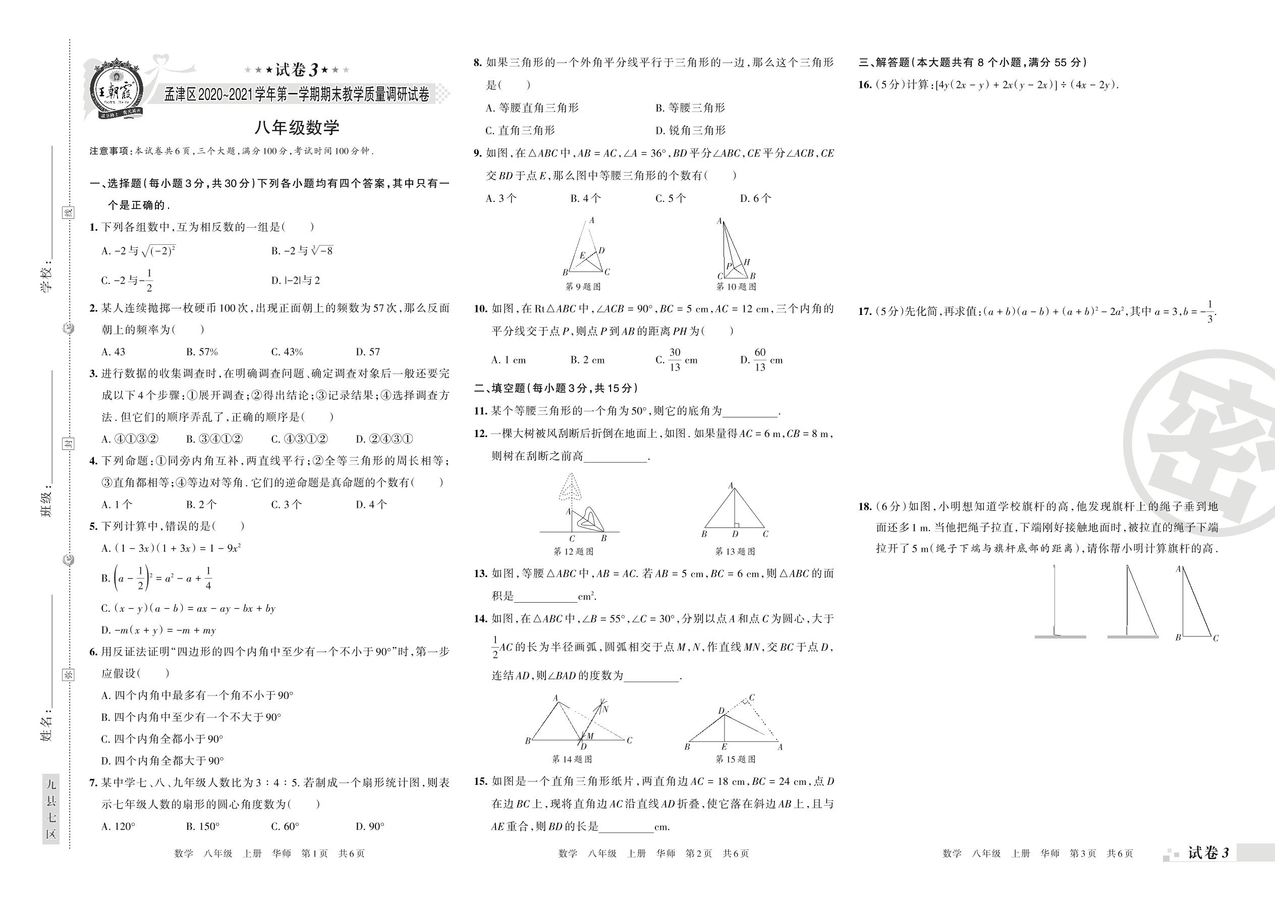 孟津区2020~2021学年第一学期期末教学质量调研试卷八年级数学(华师版)【3】