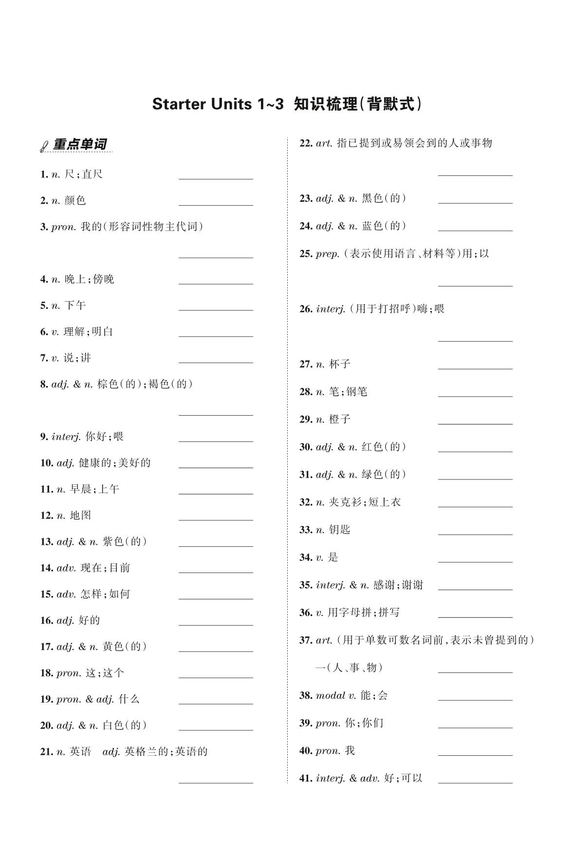 王朝霞期末过课本——Starter Units 1~3 知识梳理(背默式)七年级上册英语(人教版)_R211207100544300【1】