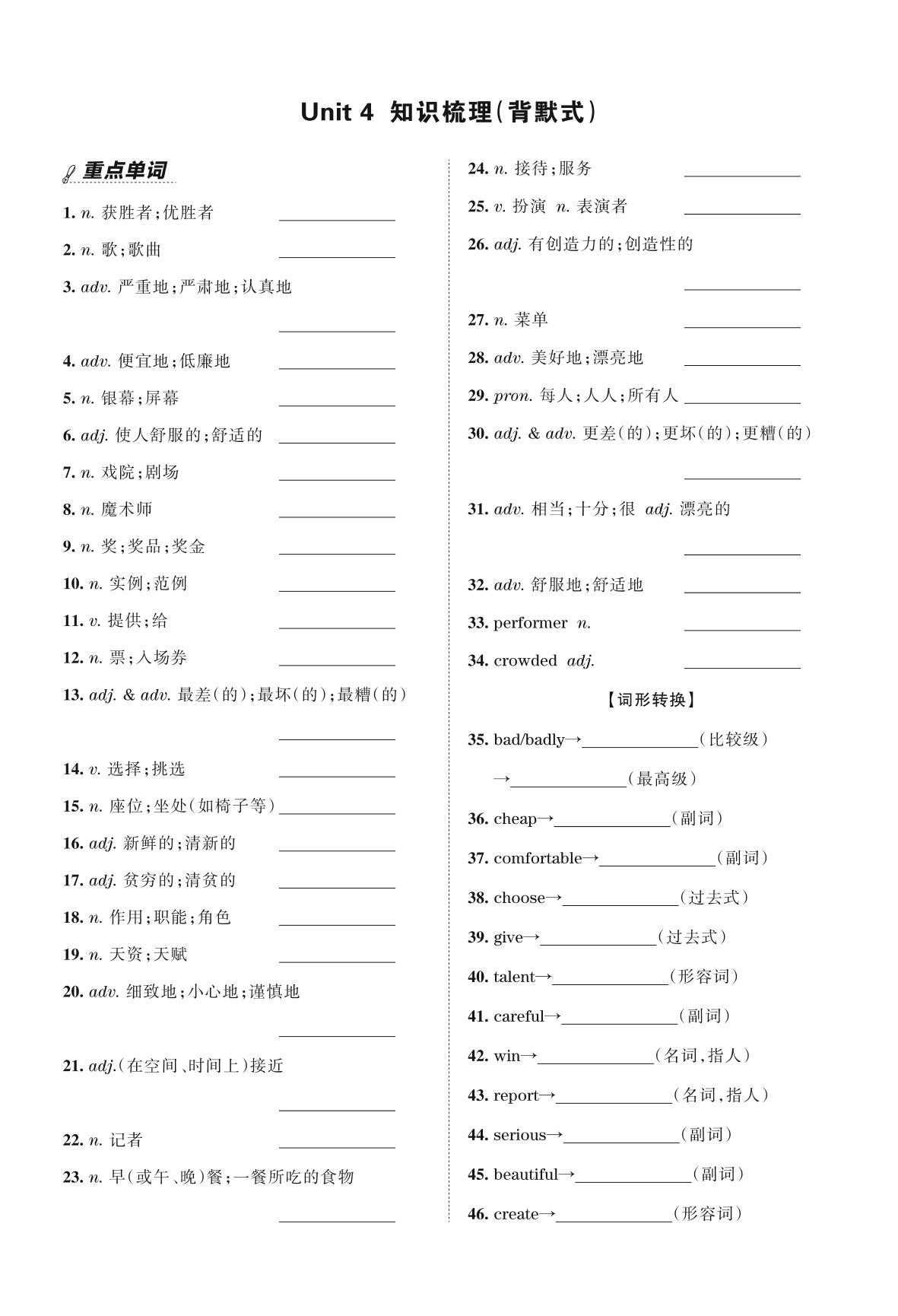 王朝霞期末过课本——Unit 4 知识梳理(背默式)八年级上册英语(人教版)_R211207101053849【4】
