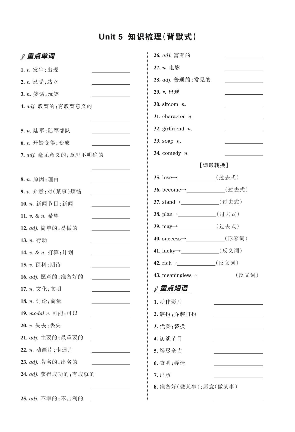 王朝霞期末过课本——Unit 5 知识梳理(背默式)八年级上册英语(人教版)_R211207101054063【5】