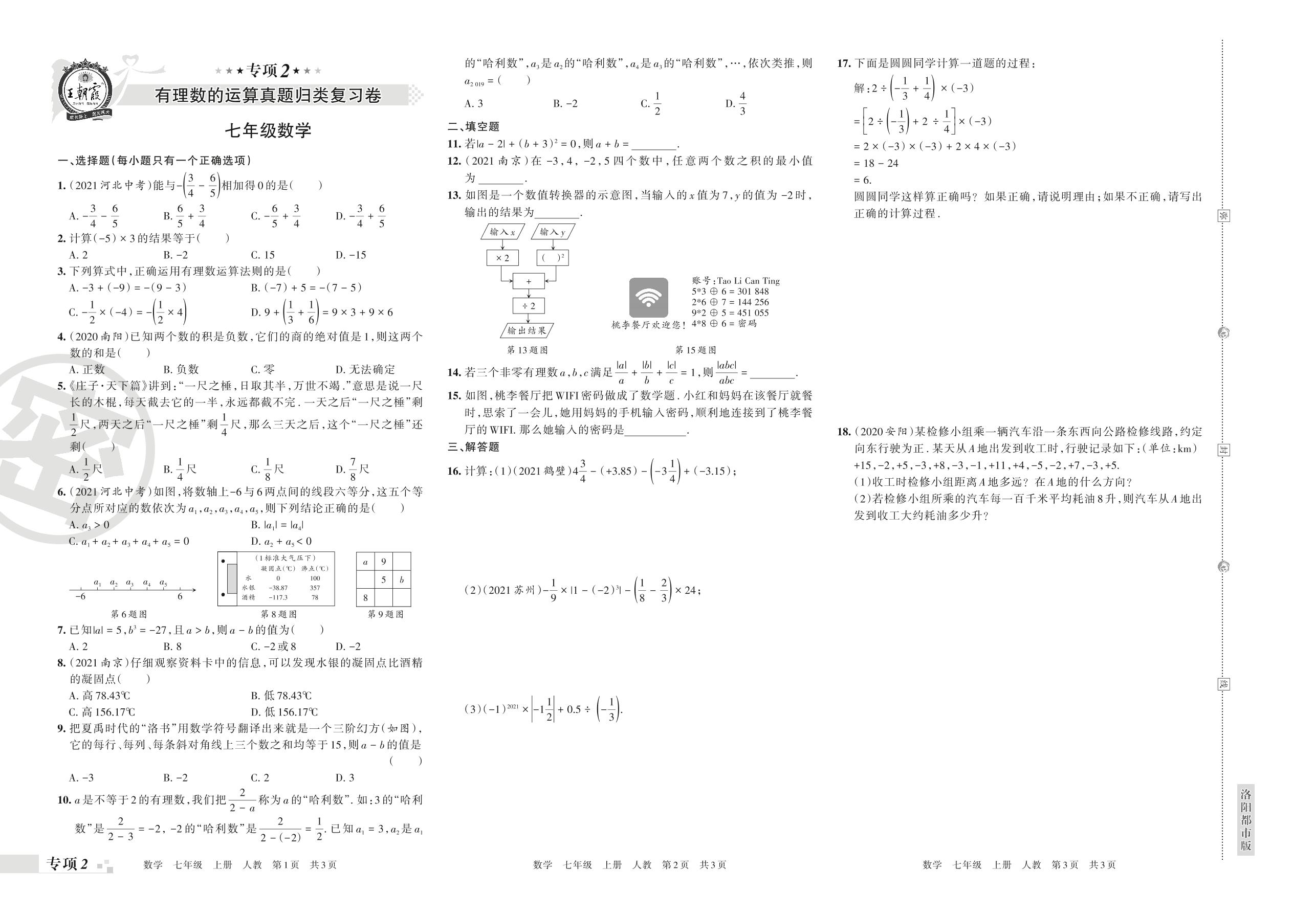 王朝霞期末专项卷——有理数的运算真题归类复习卷七年级上册数学(人教版)_R211207102214438【2】