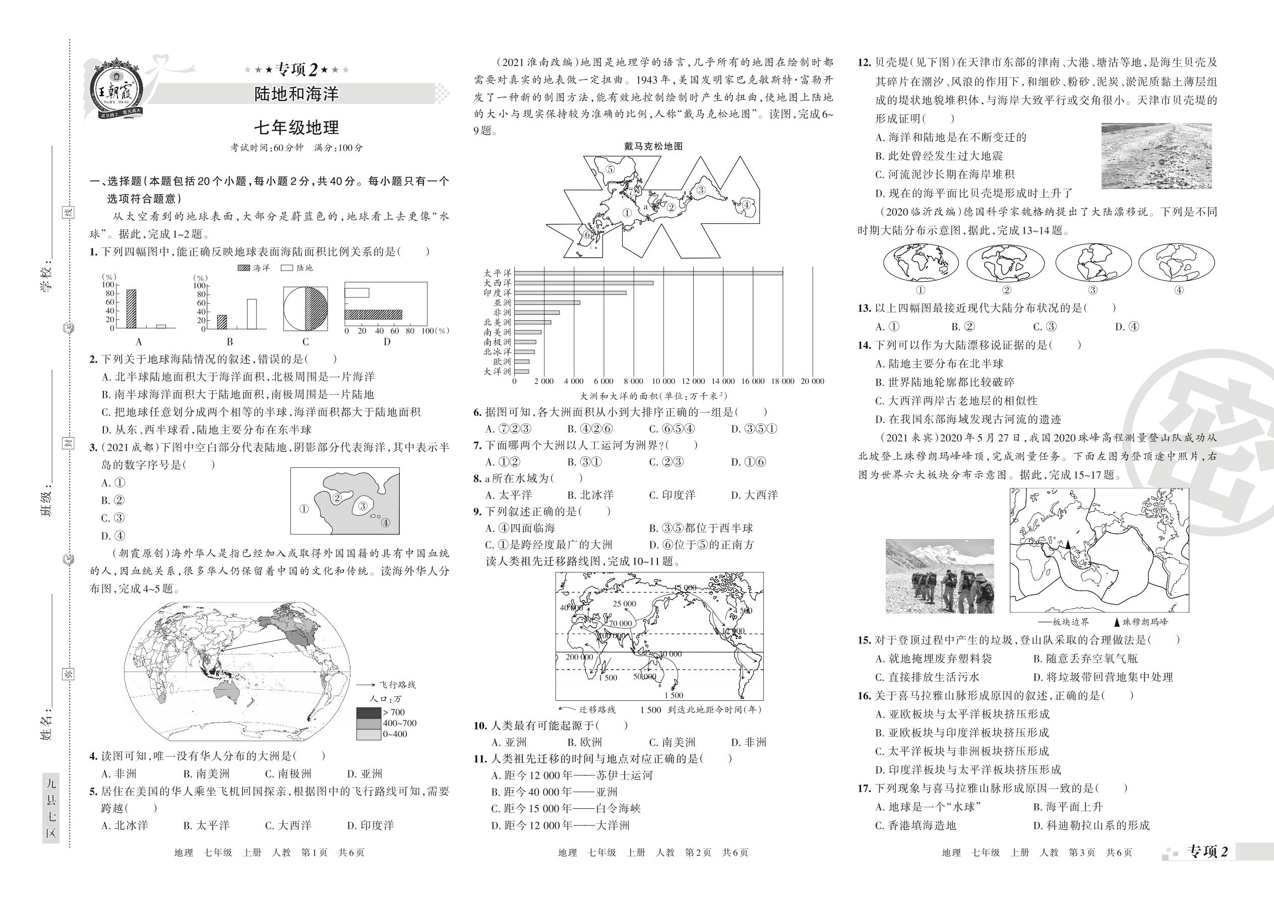 王朝霞期末专项卷——陆地和海洋七年级上册地理(人教版)_R211207104837370【2】