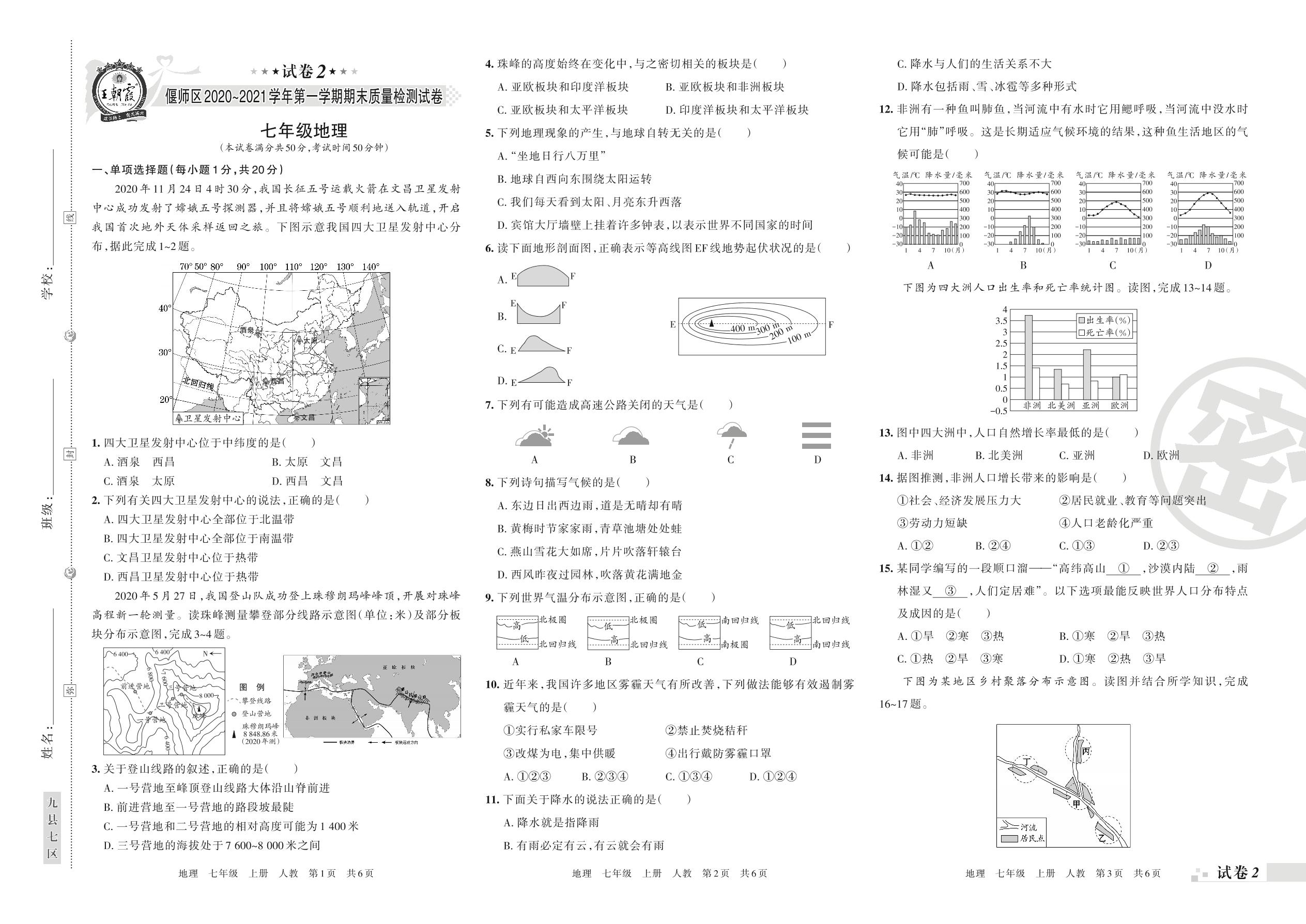 偃师区2020~2021学年第一学期期末质量检测试卷七年级地理(人教版)【2】