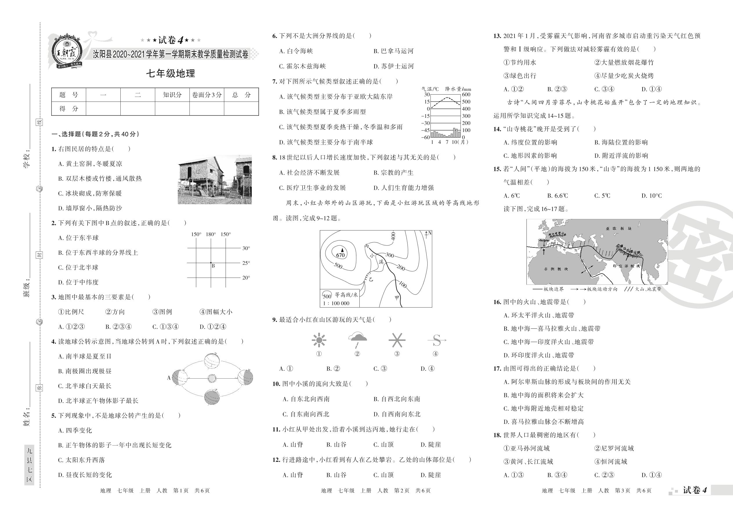 七年级地理人教版上册期末卷