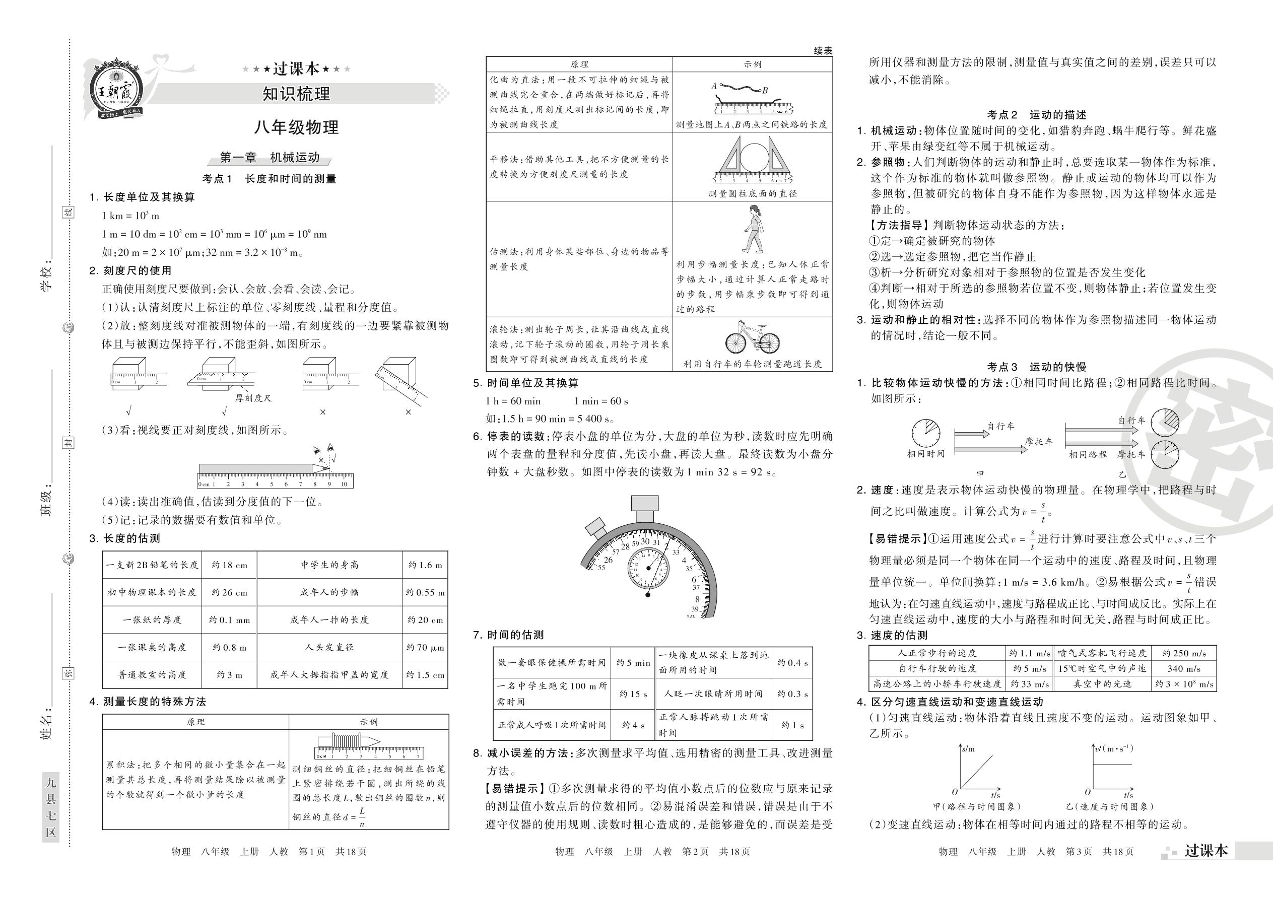 王朝霞期末知识梳理八年级上册物理(人教版)