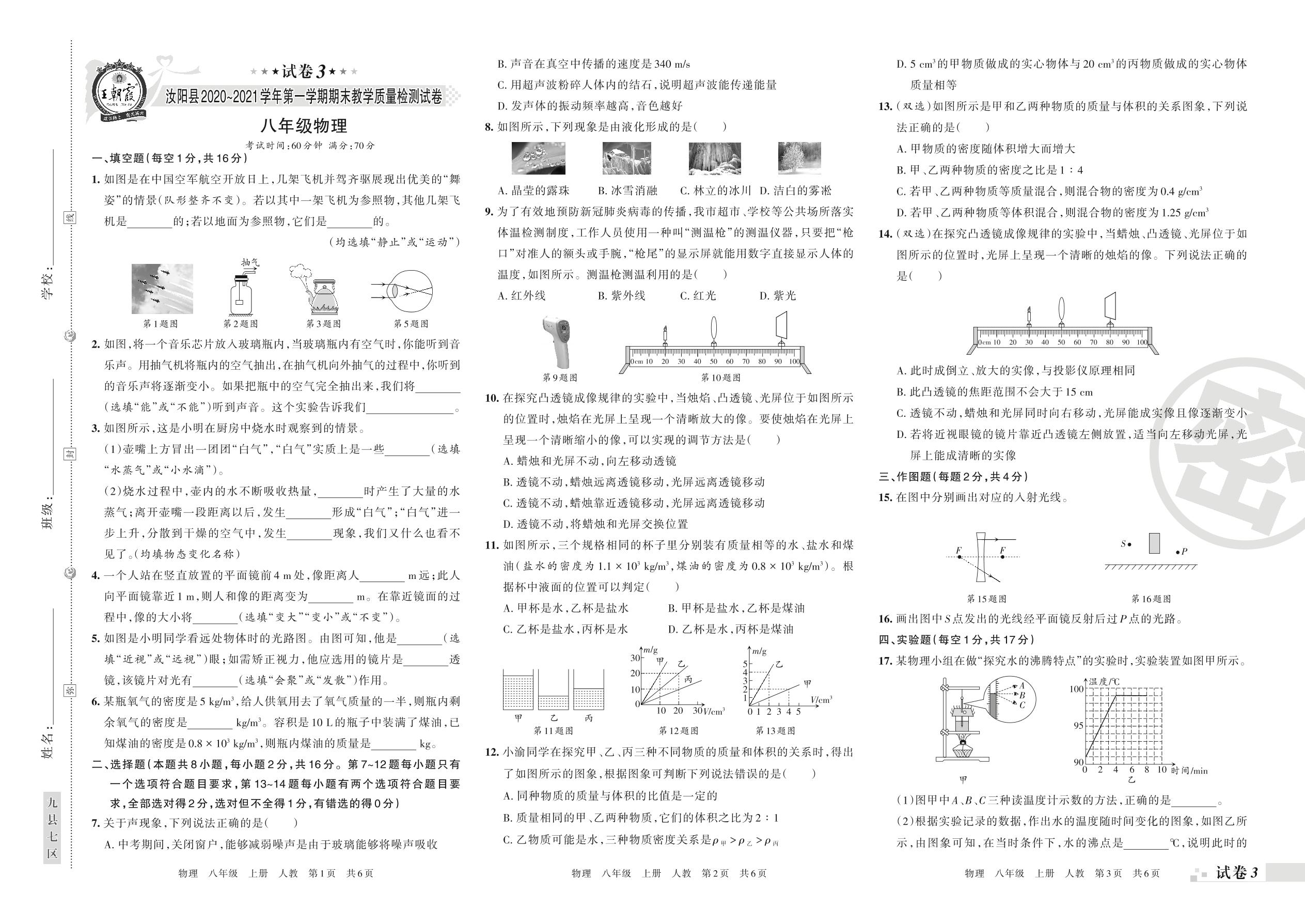 汝阳县2020~2021学年第一学期期末教学质量检测试卷八年级物理(人教版)【3】