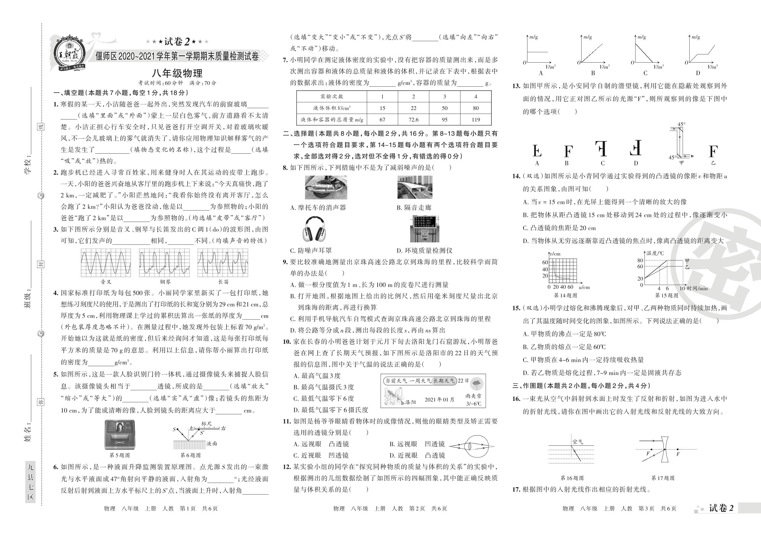 八年级物理人教版上册期末卷