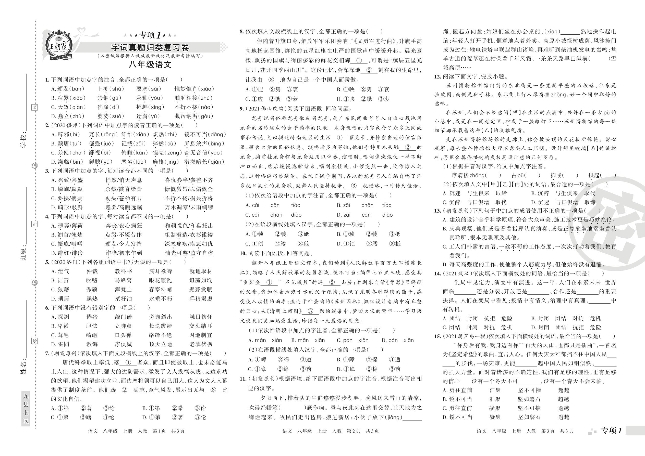 王朝霞期末专项卷——字词真题归类复习卷八年级上册语文(人教版)_R211207110121584【1】
