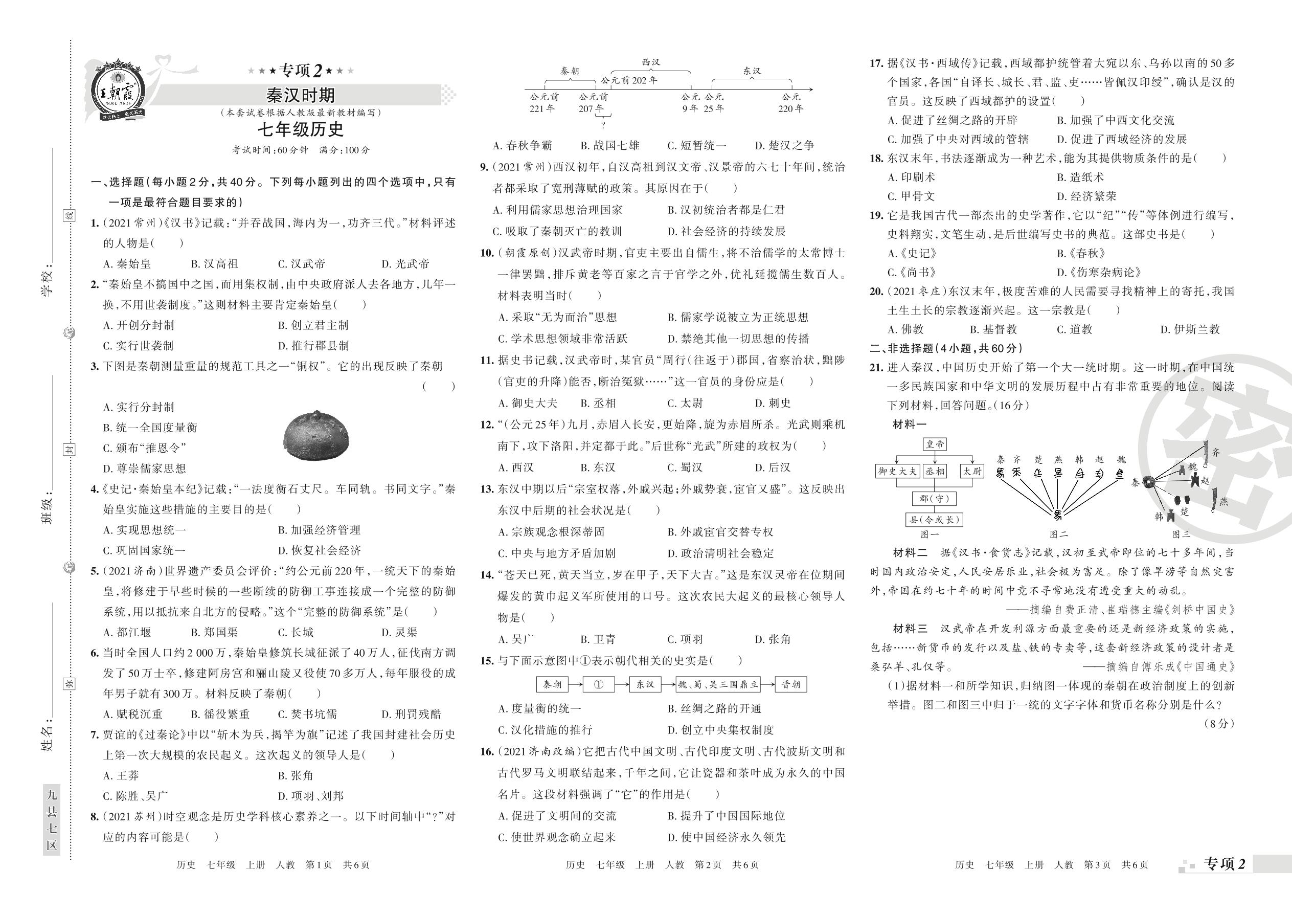 王朝霞期末专项卷——秦汉时期七年级上册历史(人教版)_R211207112030703【2】