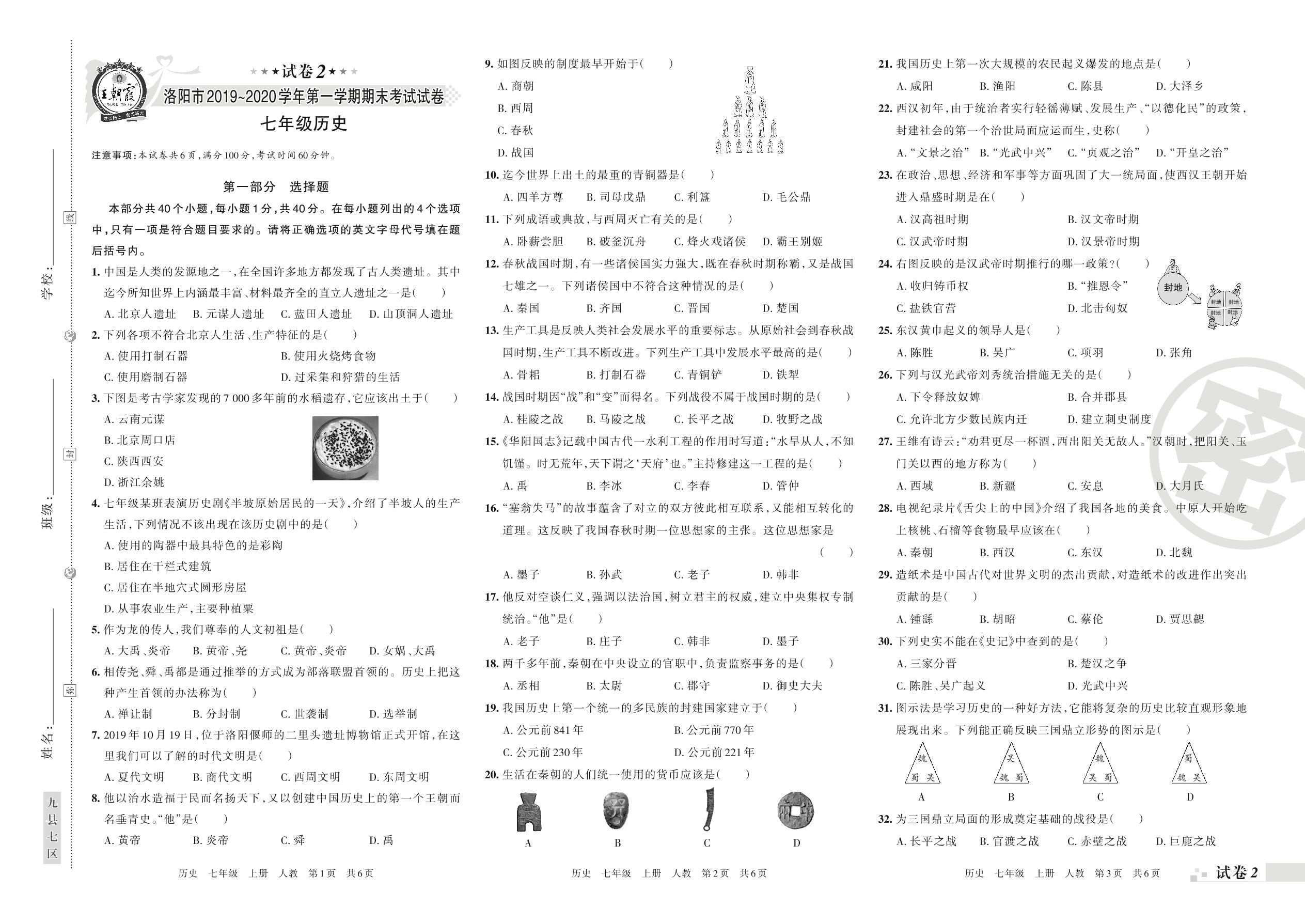 洛阳市2019~2020学年第一学期期末考试试卷七年级历史(人教版)【2】