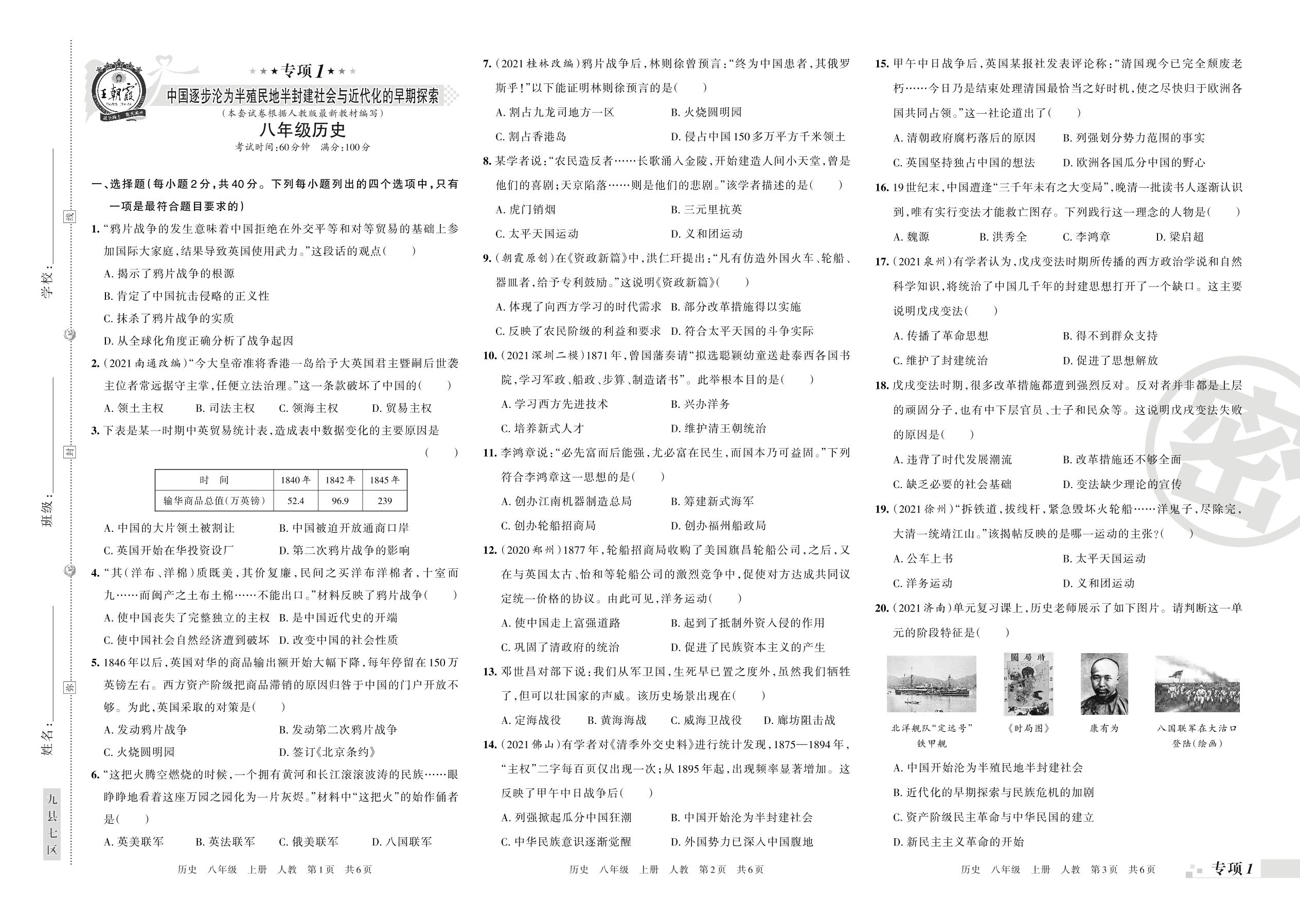 王朝霞期末专项卷——中国逐步沦为半殖民地半封建社会与近代化的早期探索八年级上册历史(人教版)_R211207112407964【1】
