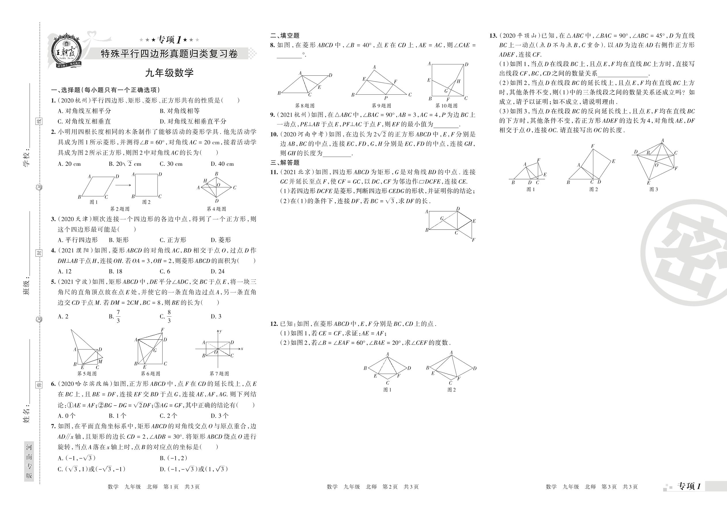2021-2022学年第一学期王朝霞期末专项卷——特殊平行四边形真题归类复习卷九年级数学(北师版)【1】