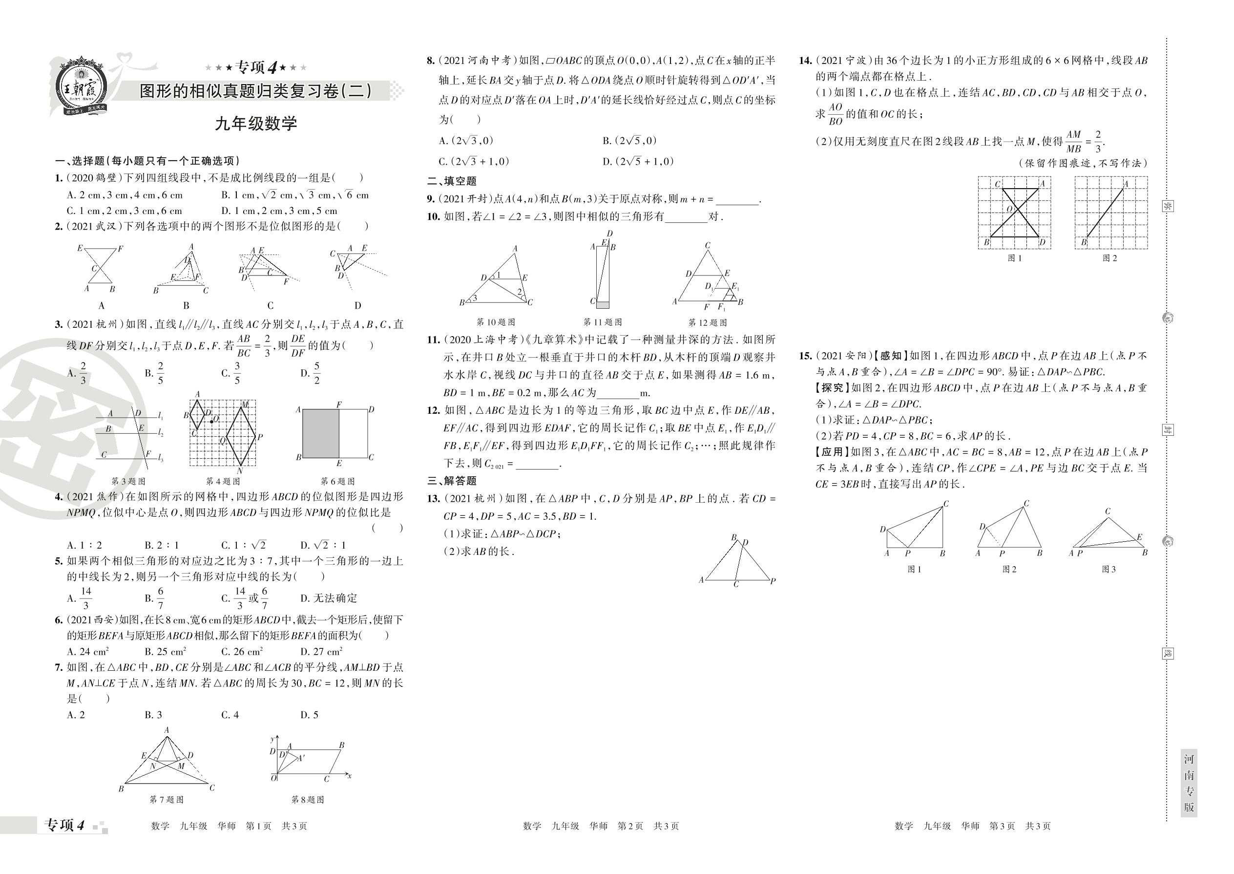2021-2022学年第一学期王朝霞期末专项卷——图形的相似真题归类复习卷(二)九年级数学(华师版)【4】