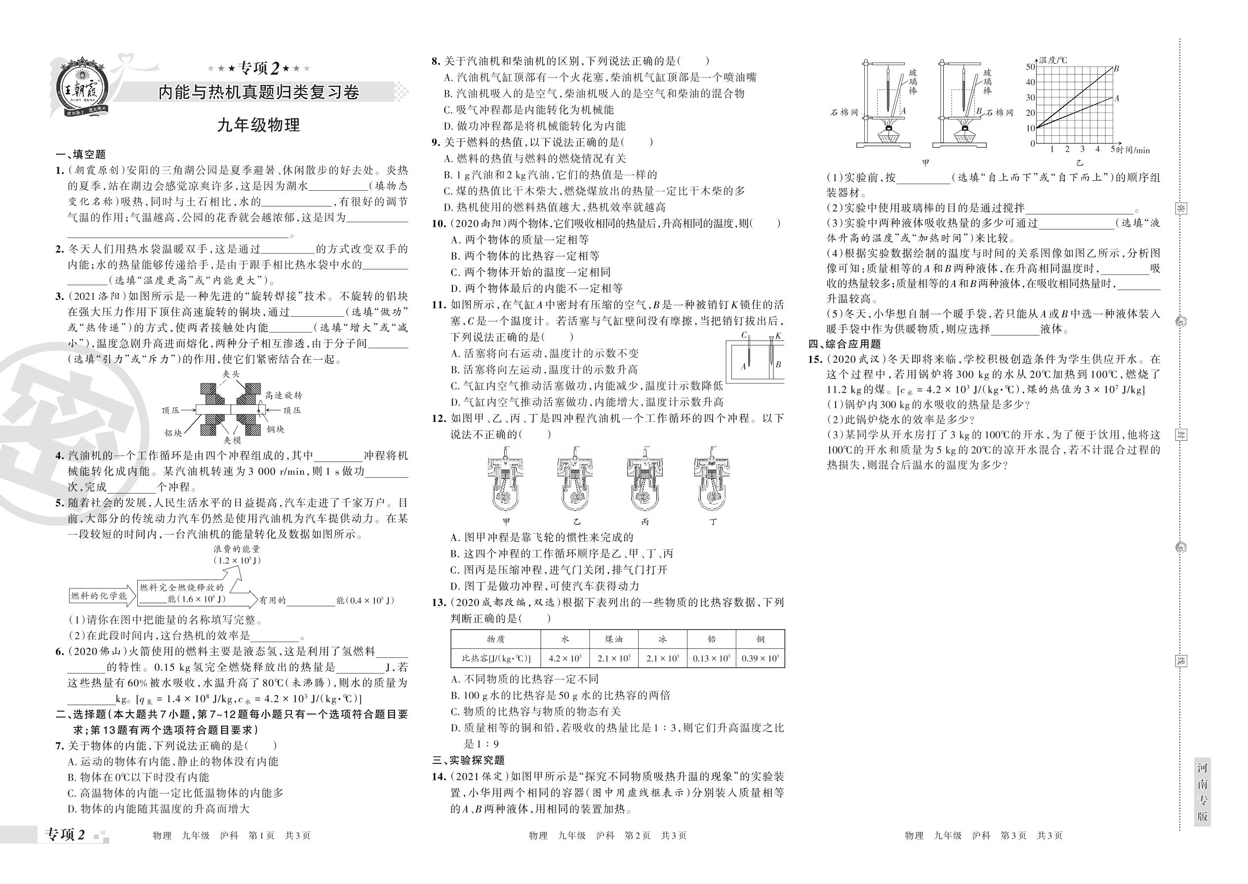 2021-2022学年第一学期王朝霞期末专项卷——内能与热机真题归类复习卷九年级物理(沪科版)【2】