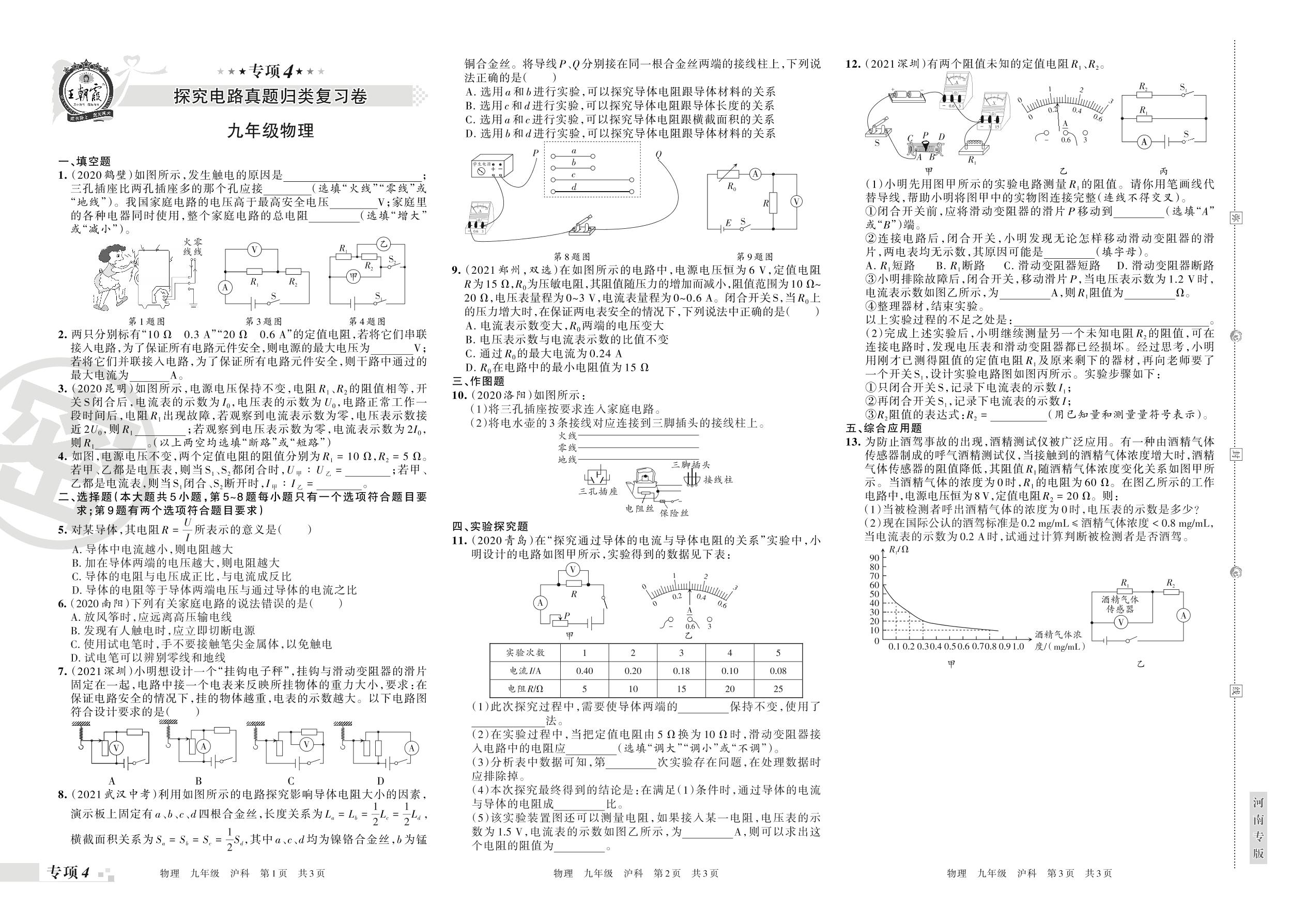 2021-2022学年第一学期王朝霞期末专项卷——探究电路真题归类复习卷九年级物理(沪科版)【4】