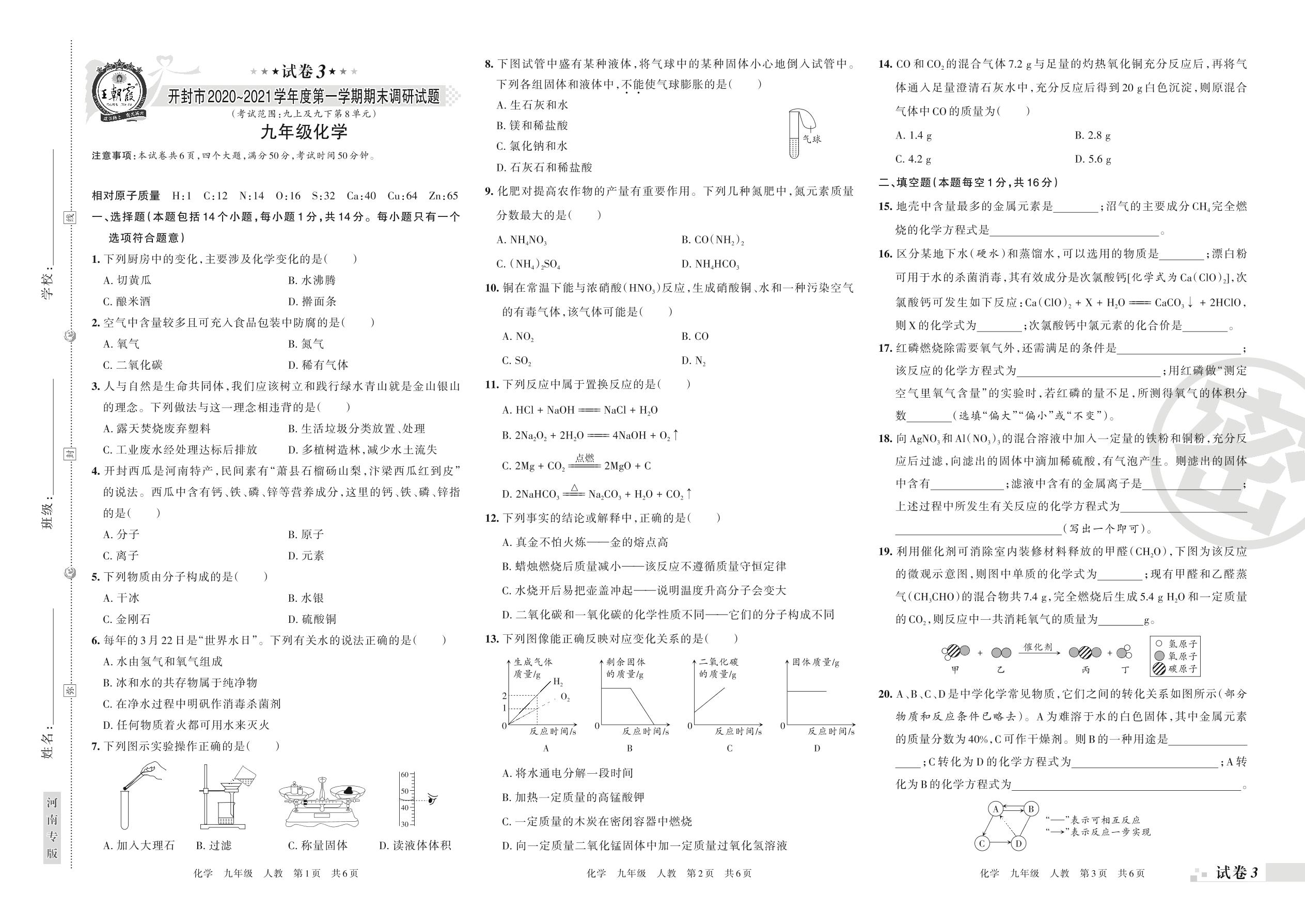开封市2020~2021学年度第一学期期末调研试题九年级化学(人教版)【3】