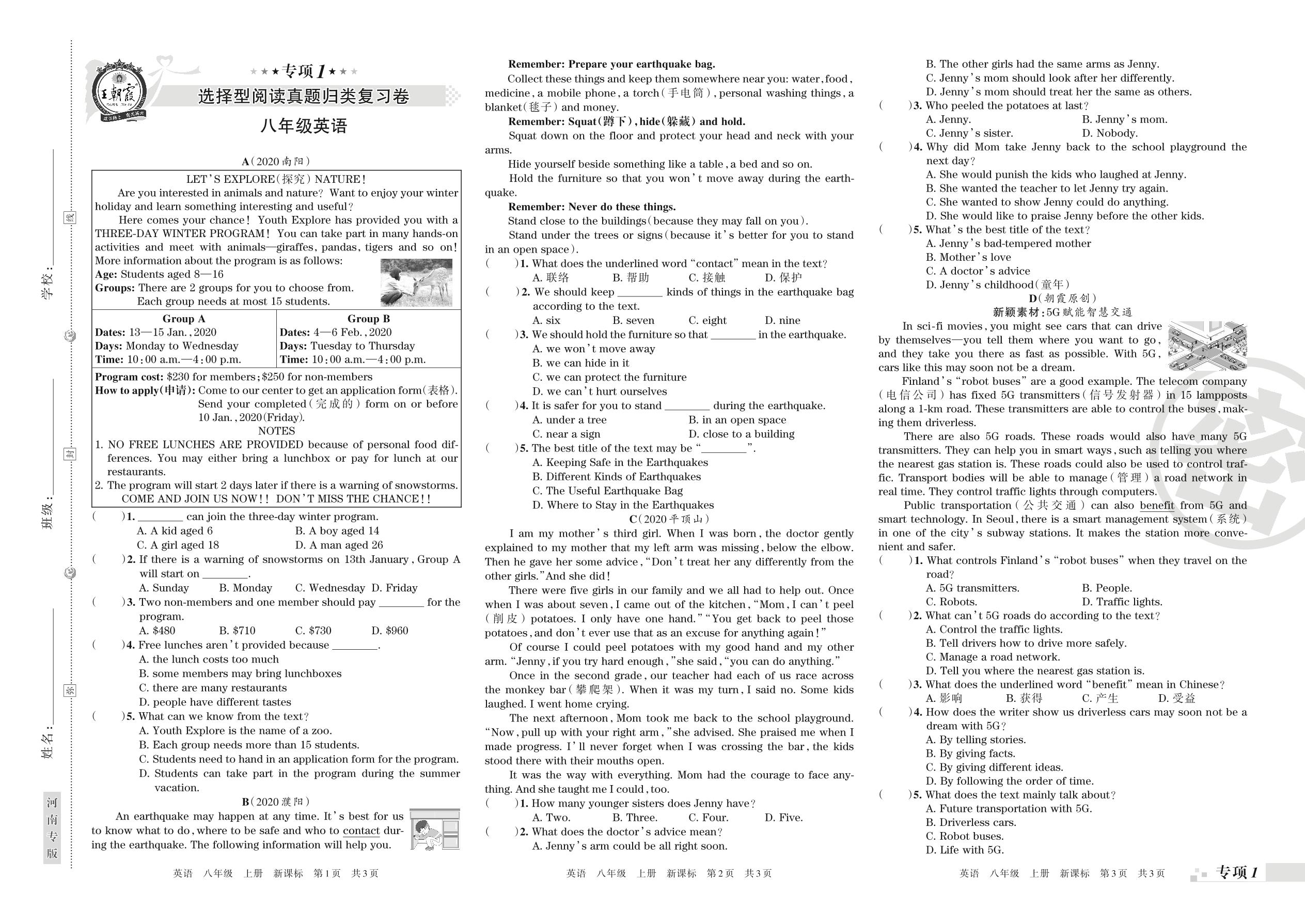 王朝霞期末专项卷——选择型阅读真题归类复习卷八年级上册英语(新课标版)_R211207141643303【1】