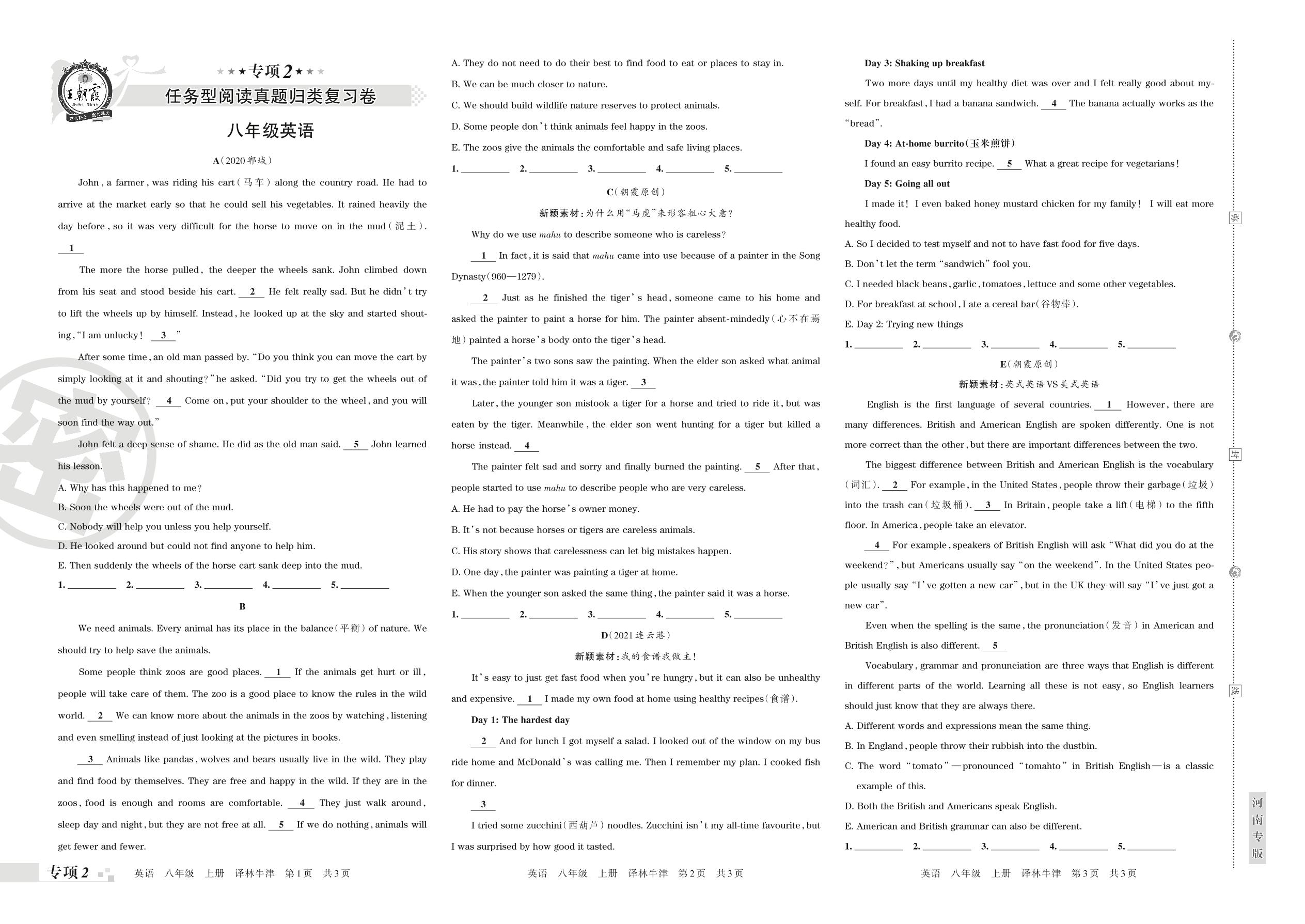 王朝霞期末专项卷——任务型阅读真题归类复习卷八年级上册英语(译林牛津版)【2】