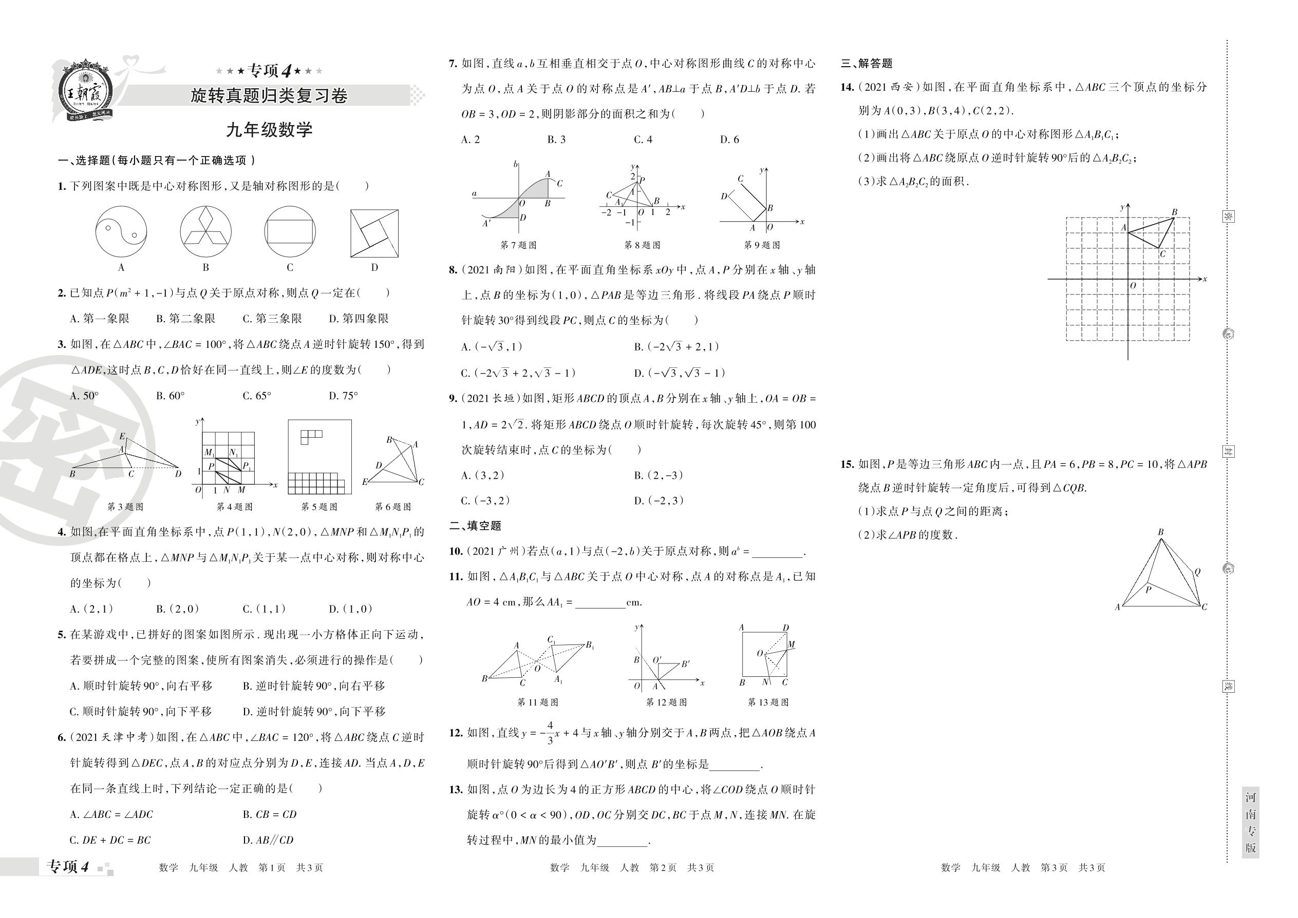 2021-2022学年第一学期王朝霞期末专项卷——旋转真题归类复习卷九年级数学(人教版)【4】