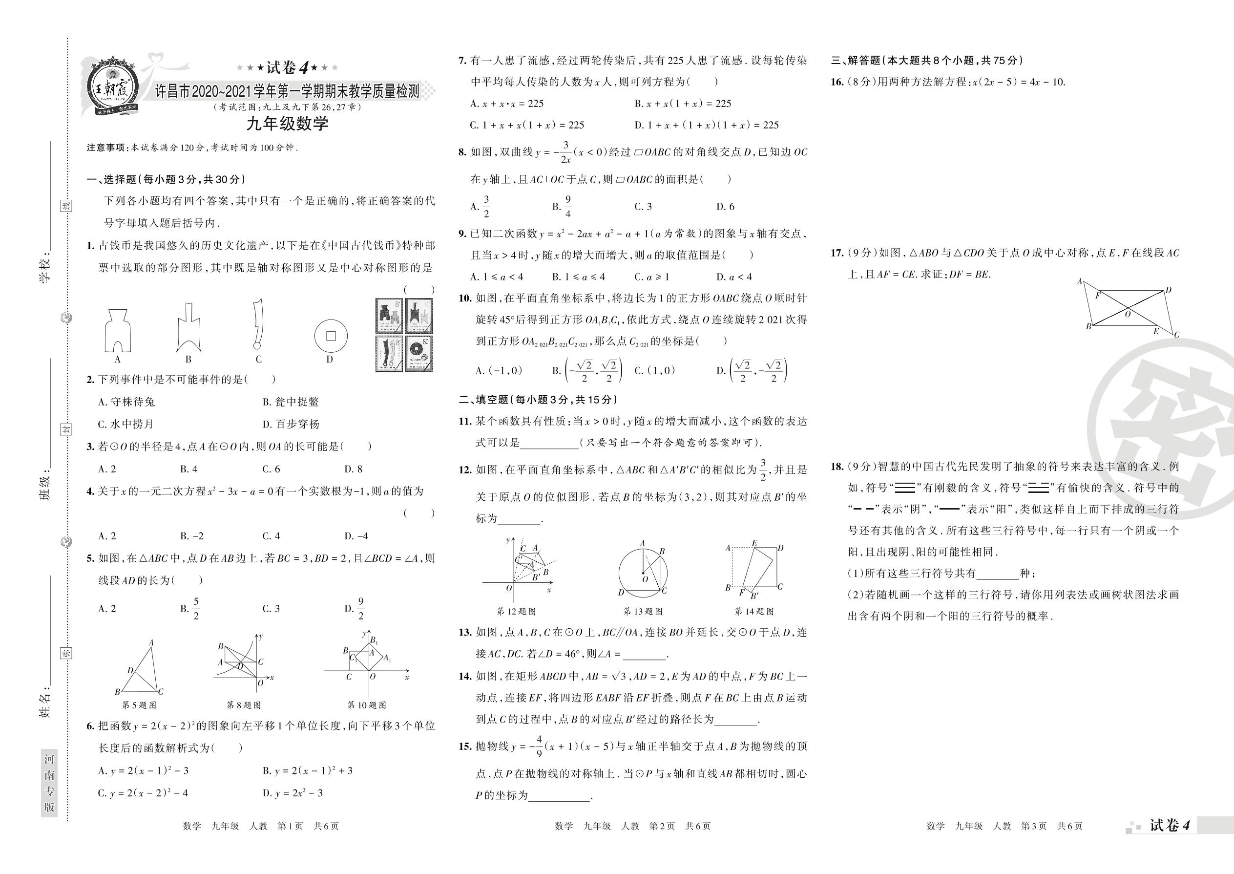 许昌市2020~2021学年第一学期期末教学质量检测九年级数学(人教版)【4】