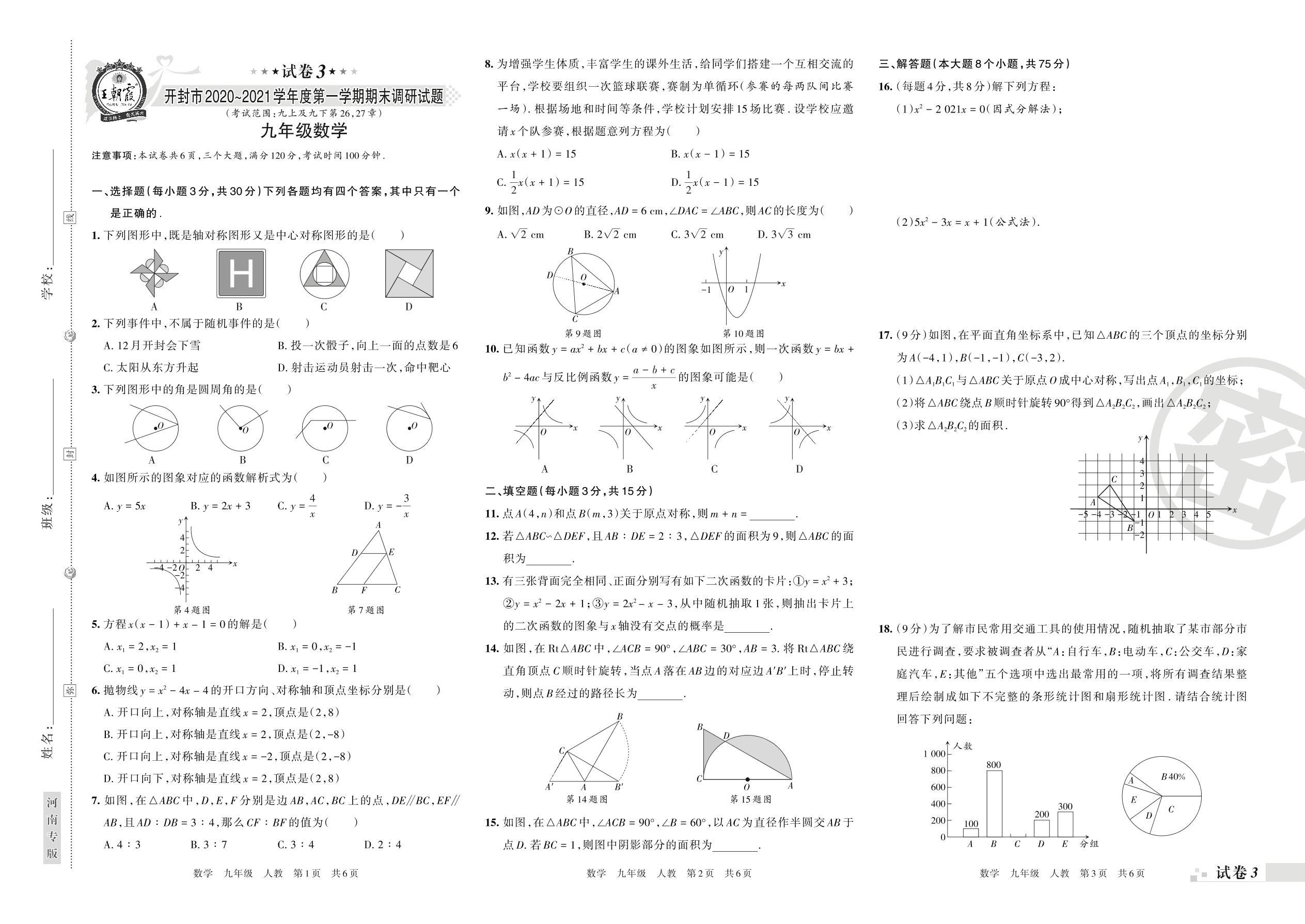 开封市2020~2021学年度第一学期期末调研试题九年级数学(人教版)【3】