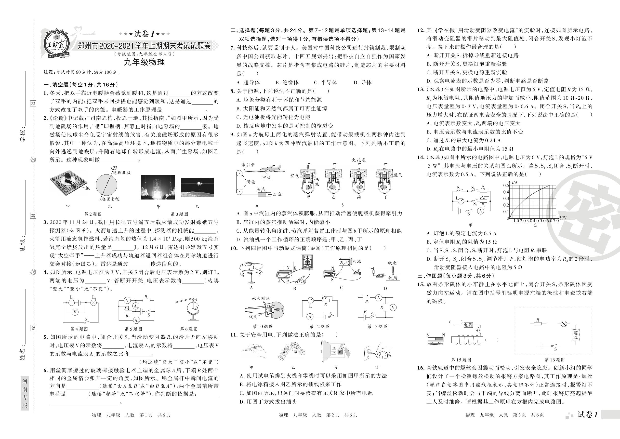 郑州市2020~2021学年上期期末考试试题卷九年级物理(人教版)【1】