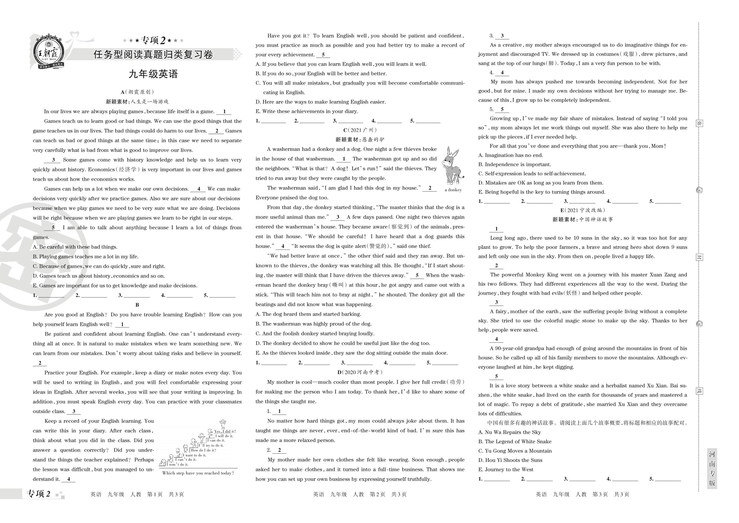 2021-2022学年第一学期王朝霞期末专项卷——任务型阅读真题归类复习卷九年级英语(人教版)【2】
