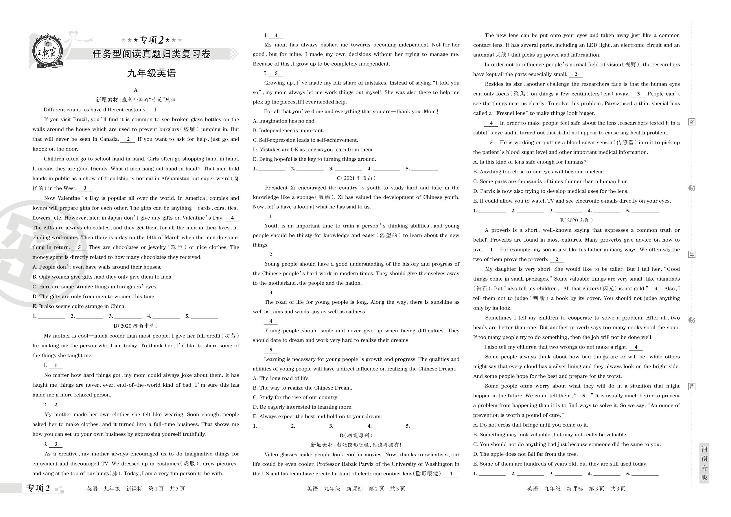 2021-2022学年第一学期王朝霞期末专项卷——任务型阅读真题归类复习卷九年级英语(新课标版)【2】