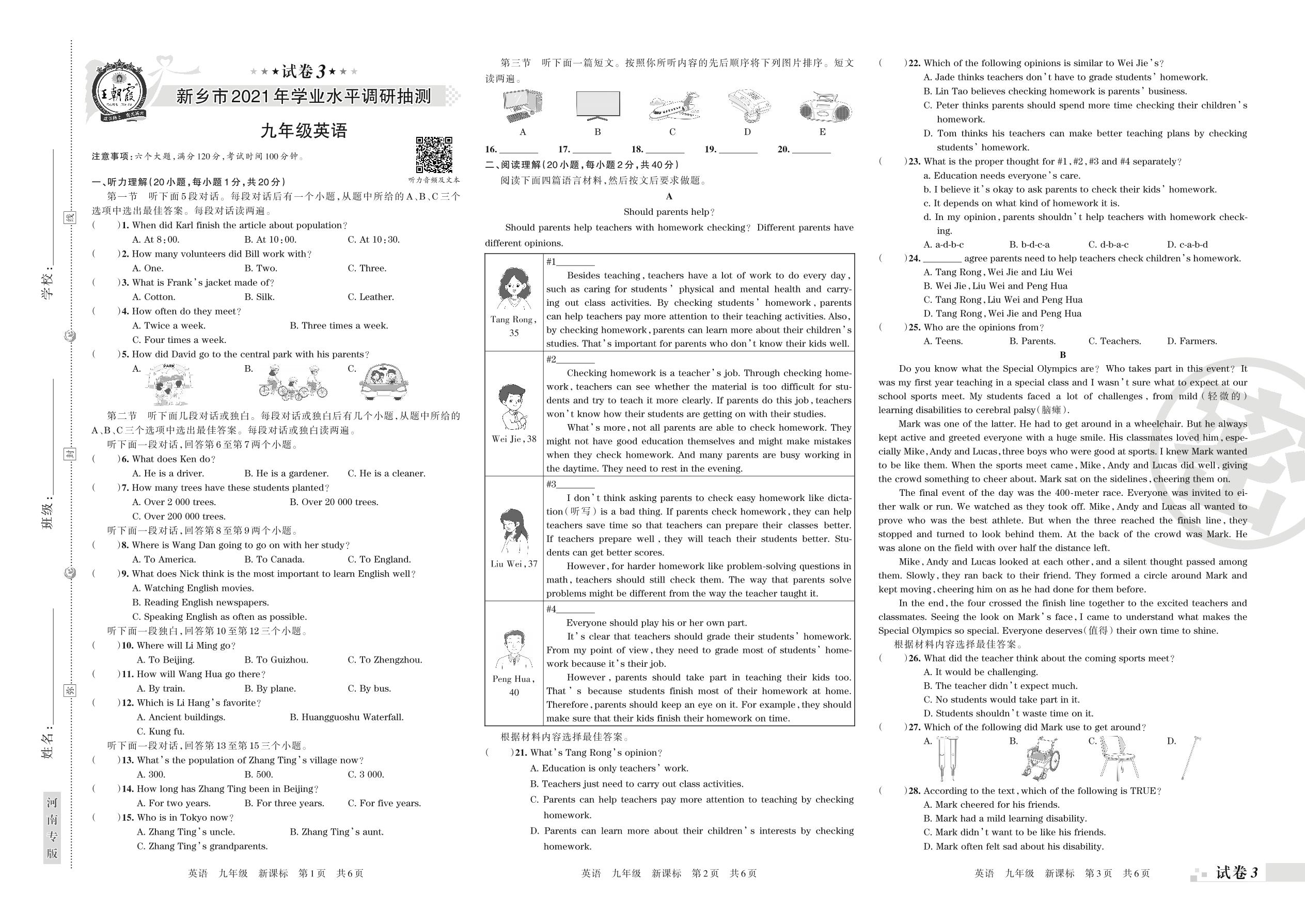 新乡市2021年学业水平调研抽测九年级英语(新课标版)【3】