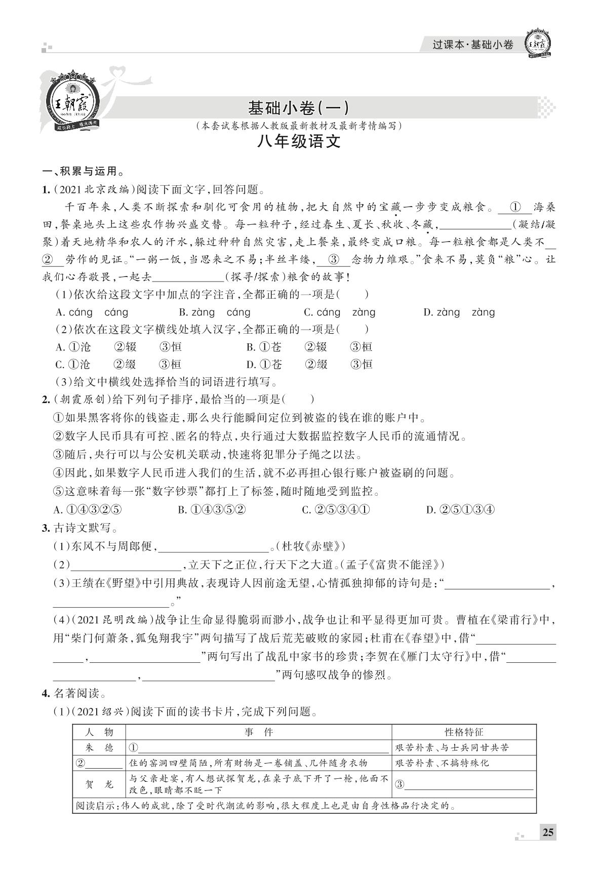 王朝霞期末过课本——基础小卷(一)八年级上册语文(人教版)_R211208150559860【7】