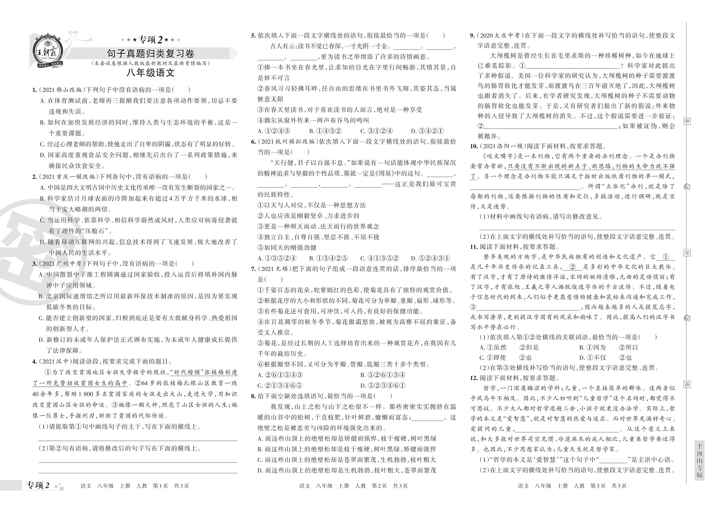 王朝霞期末专项卷——句子真题归类复习卷八年级上册语文(人教版)_R211208150600813【2】