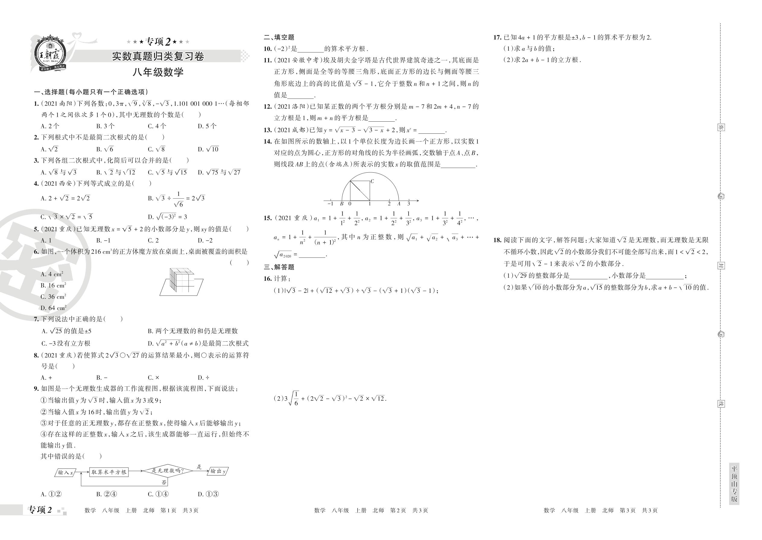 王朝霞期末专项卷——实数真题归类复习卷八年级上册数学(北师版)_R211208151447131【2】