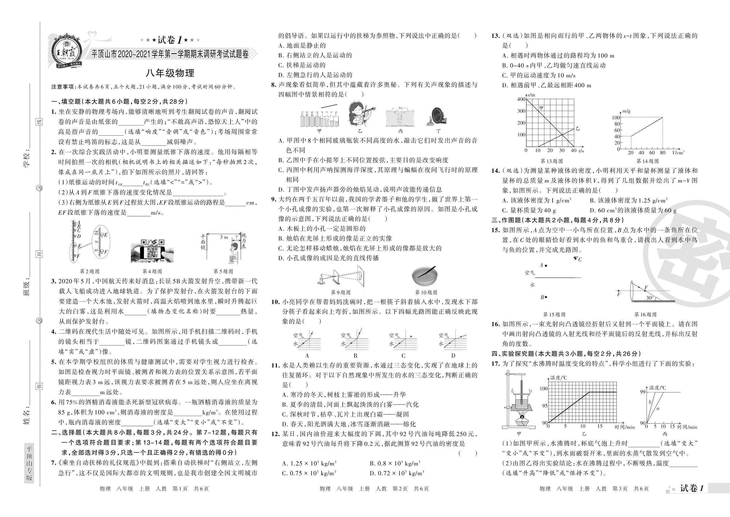 平顶山市2020~2021学年第一学期期末调研考试试题卷八年级物理(人教版)【1】