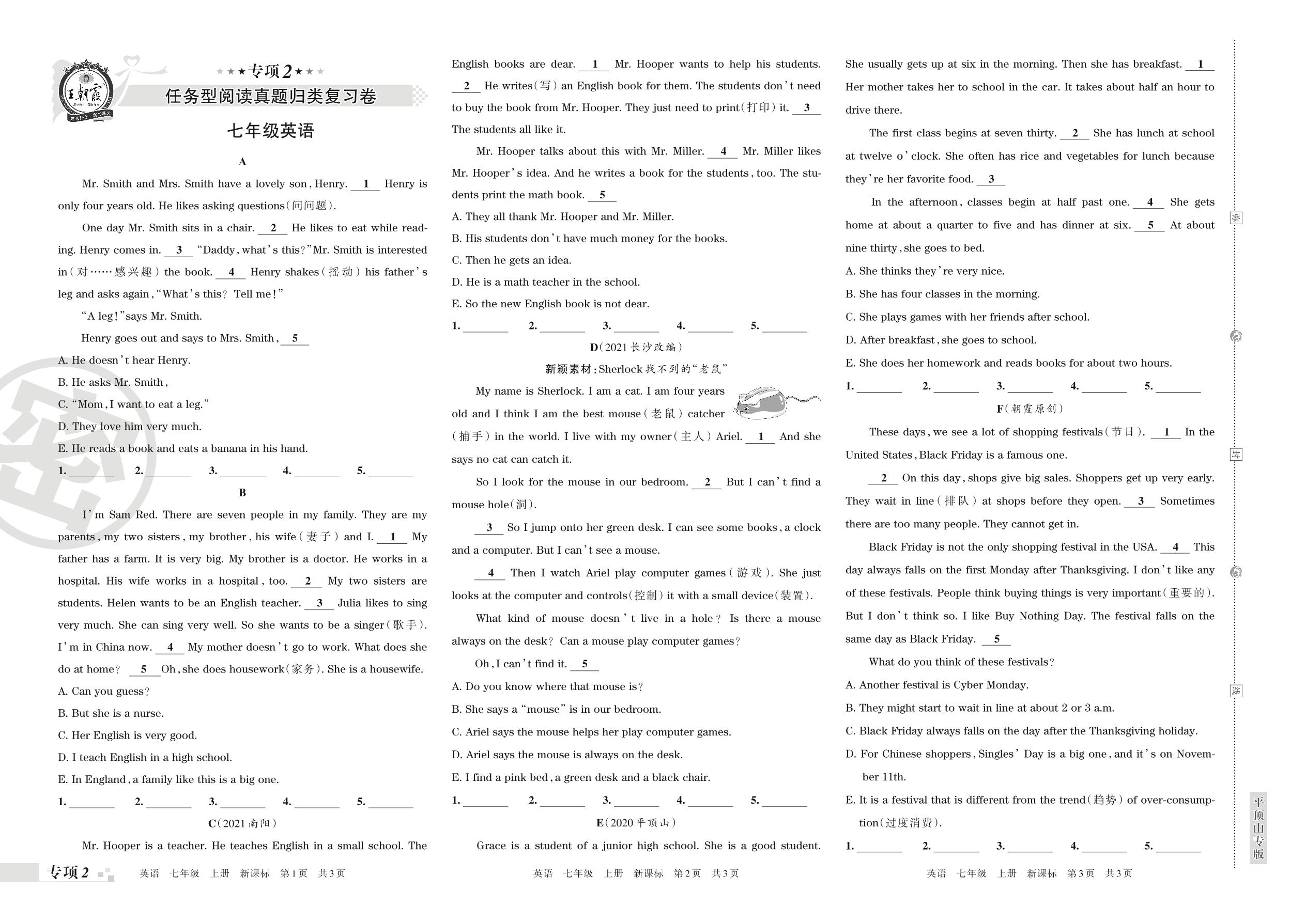 王朝霞期末专项卷——任务型阅读真题归类复习卷七年级上册英语(新课标)【2】