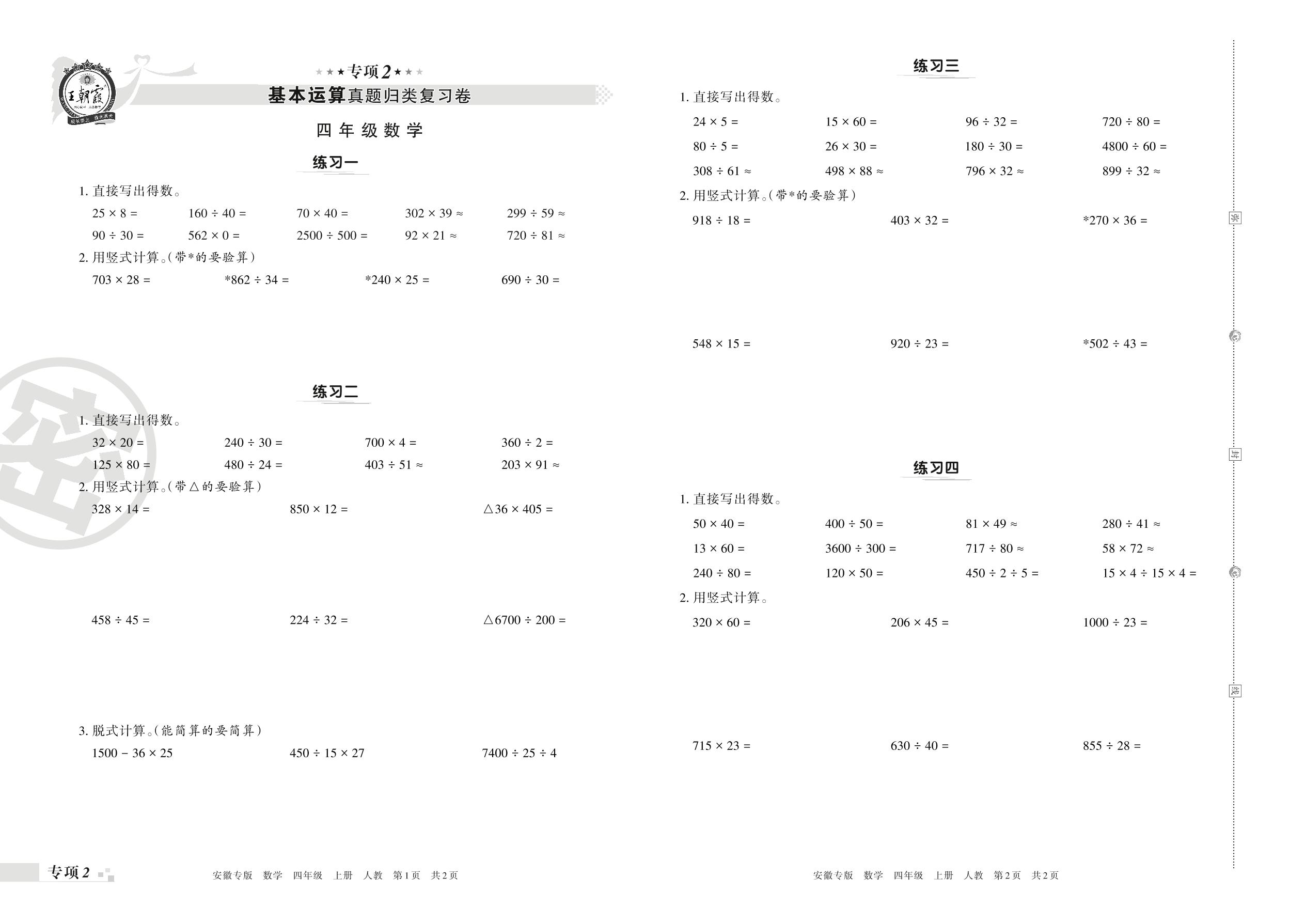 王朝霞期末专项卷——基本运算真题归类复习四年级上册数学(人教版)【2】