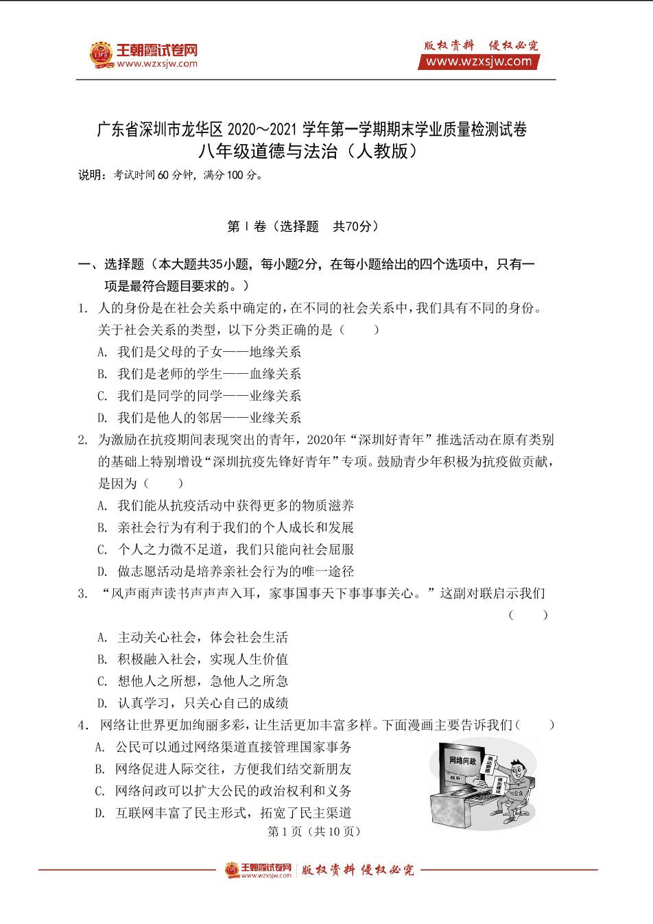广东省深圳市龙华区2020~2021学年第一学期期末八年级道德与法治学业质量检测试卷 (人教版)_R211210165108479