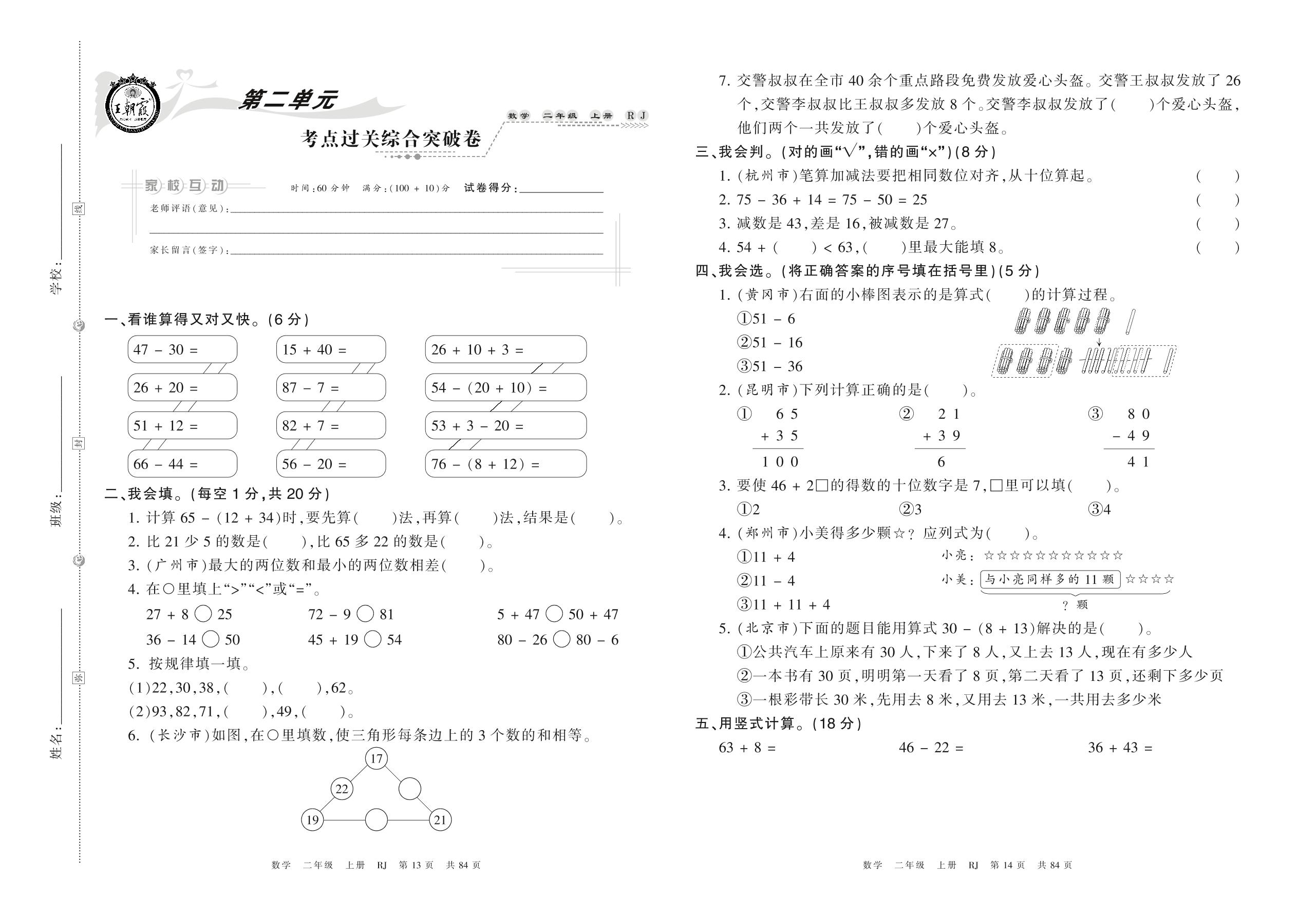 二年级数学人教版上册单元卷