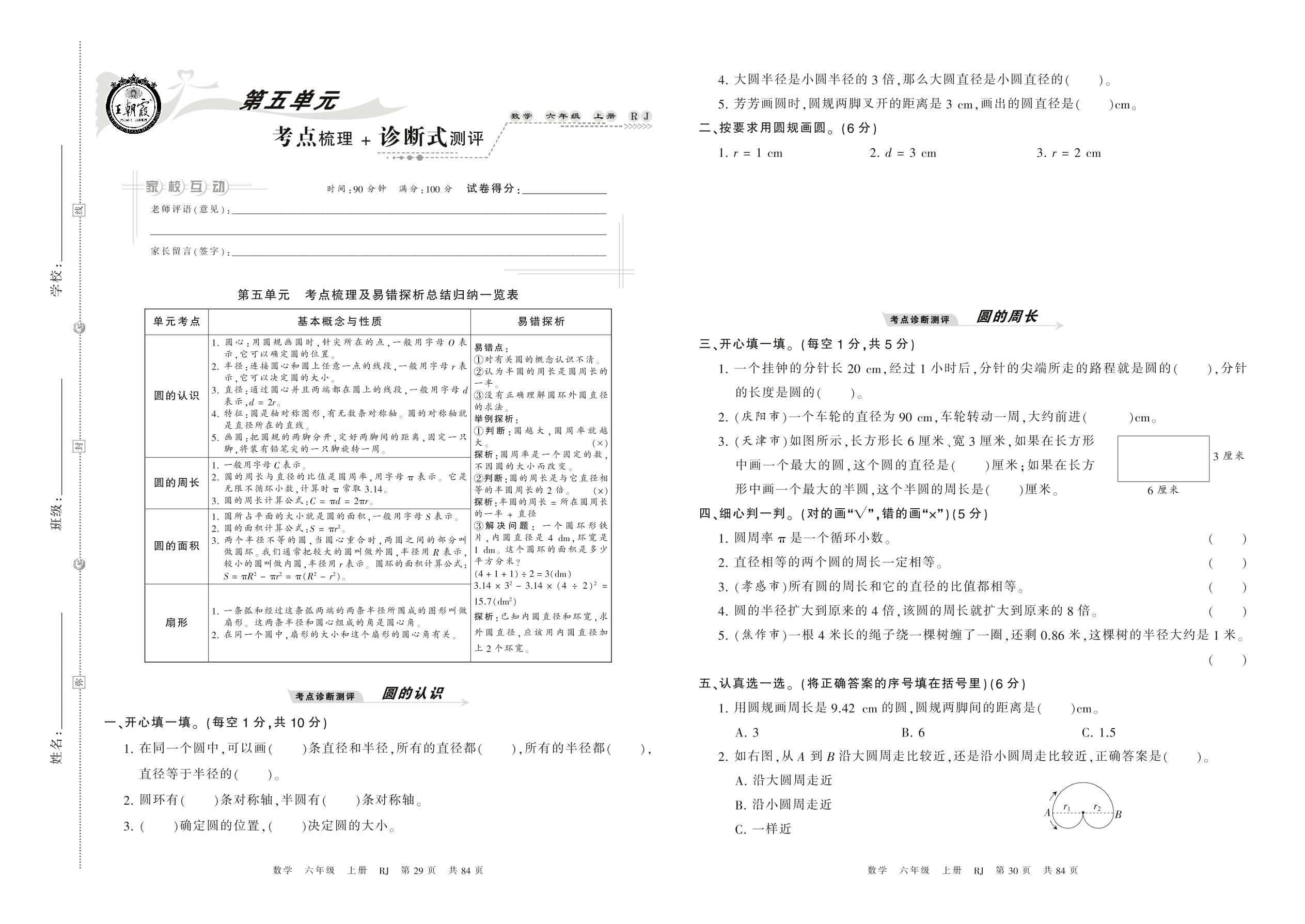 2021上册六年级数学人教版 第五单元 考点梳理+诊断式测评