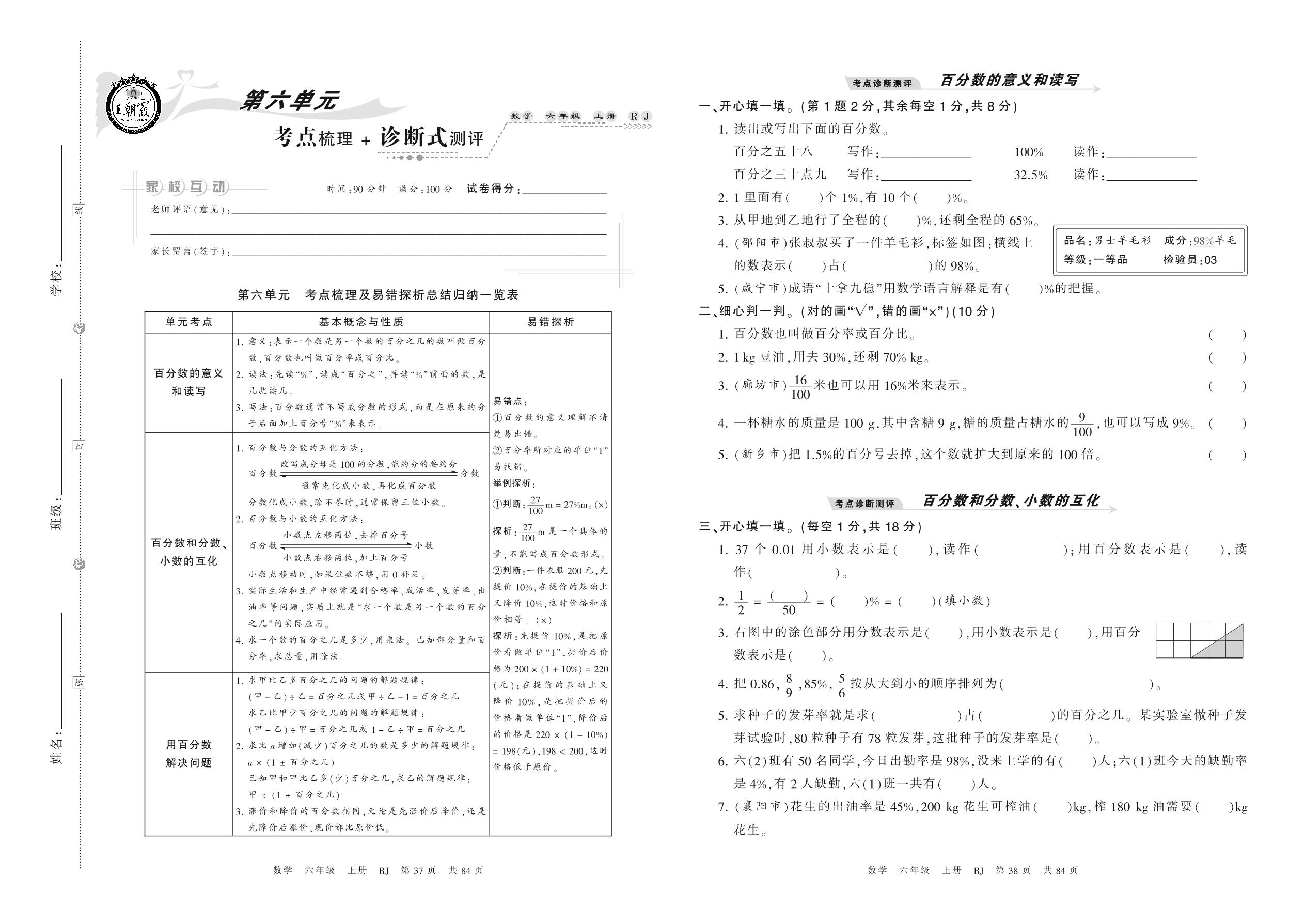 2021上册六年级数学人教版 第六单元 考点梳理+诊断式测评