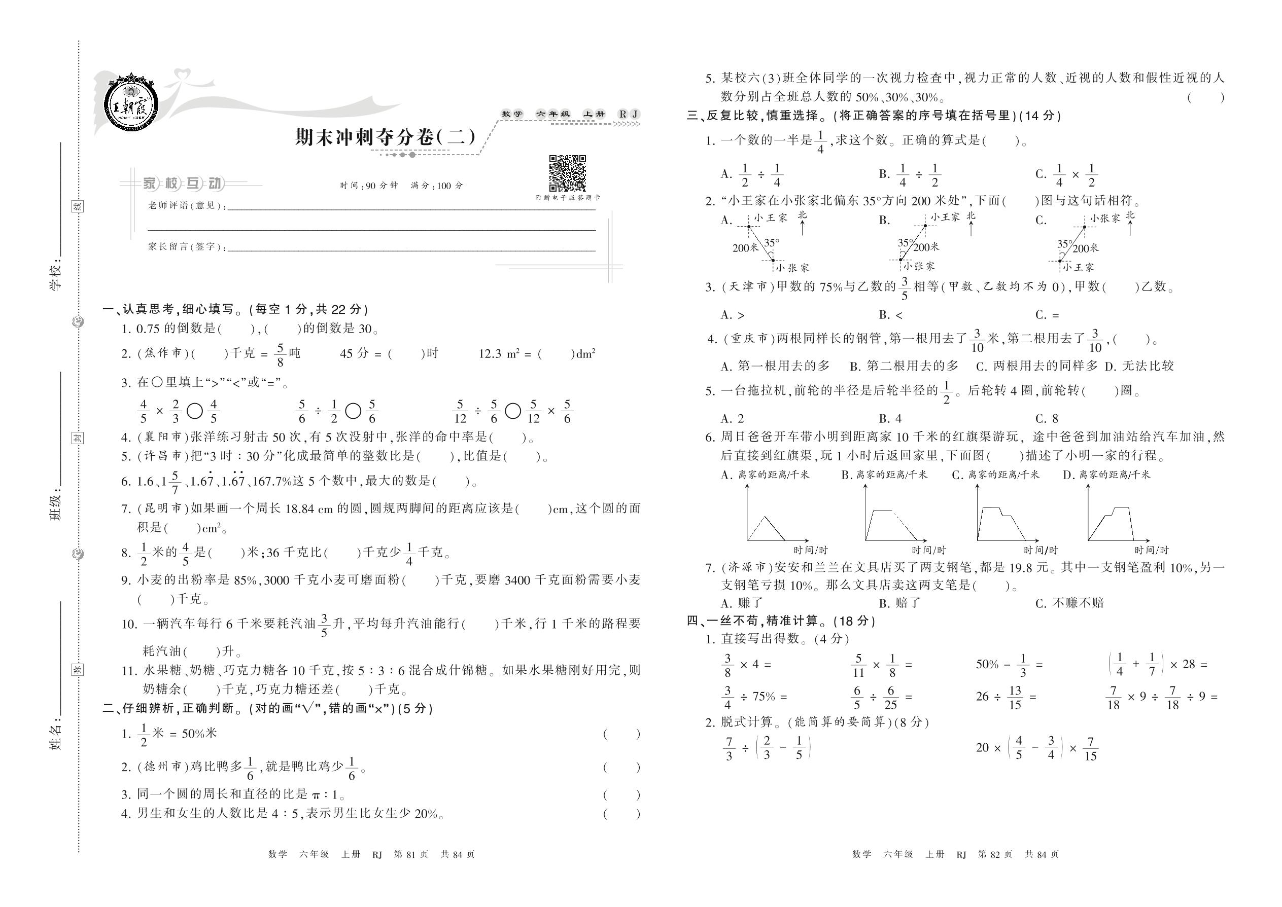 2021上册六年级数学人教版 期末冲刺夺分卷(二)