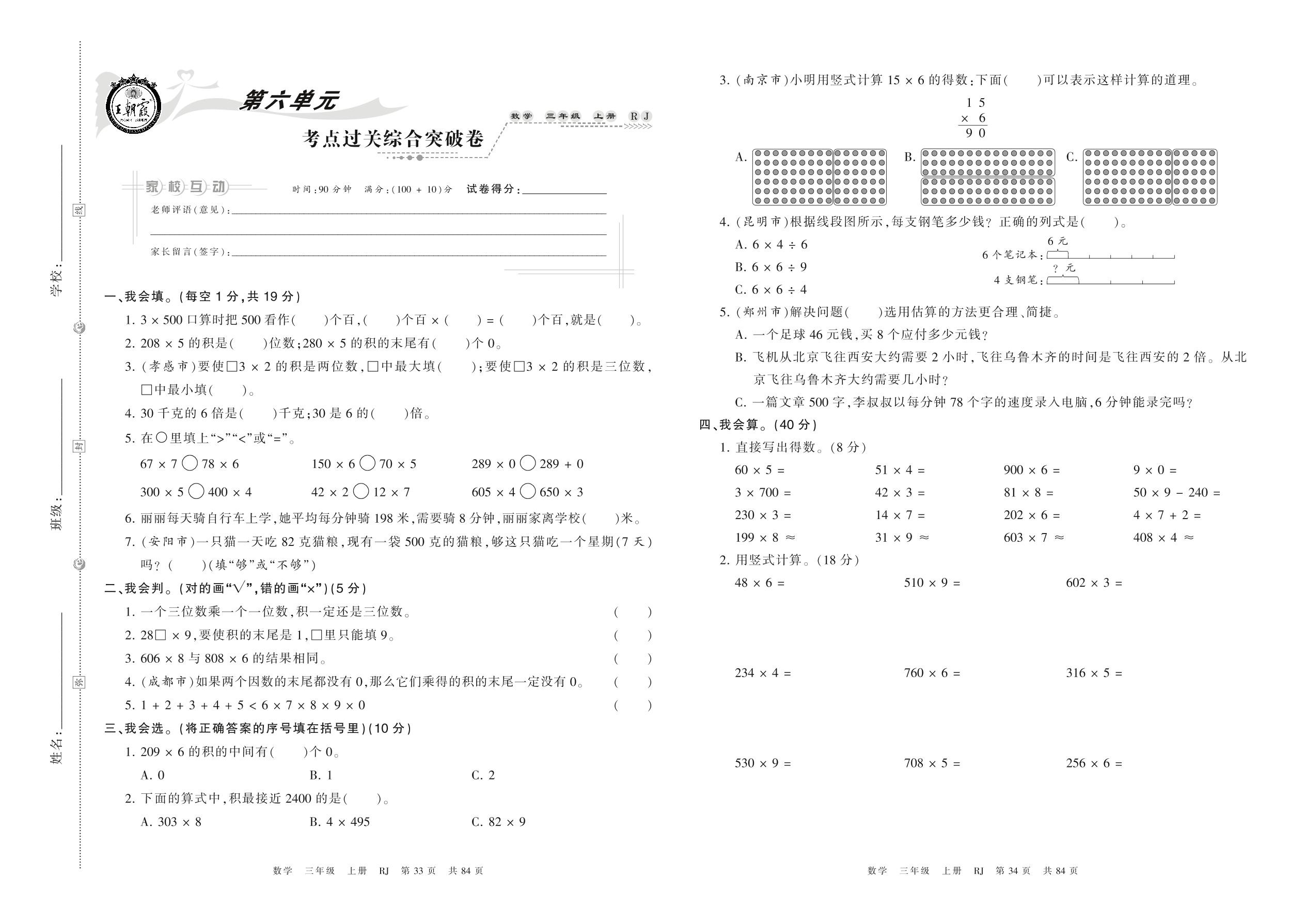 2021上册三年级数学人教版 第六单元 考点过关综合突破卷