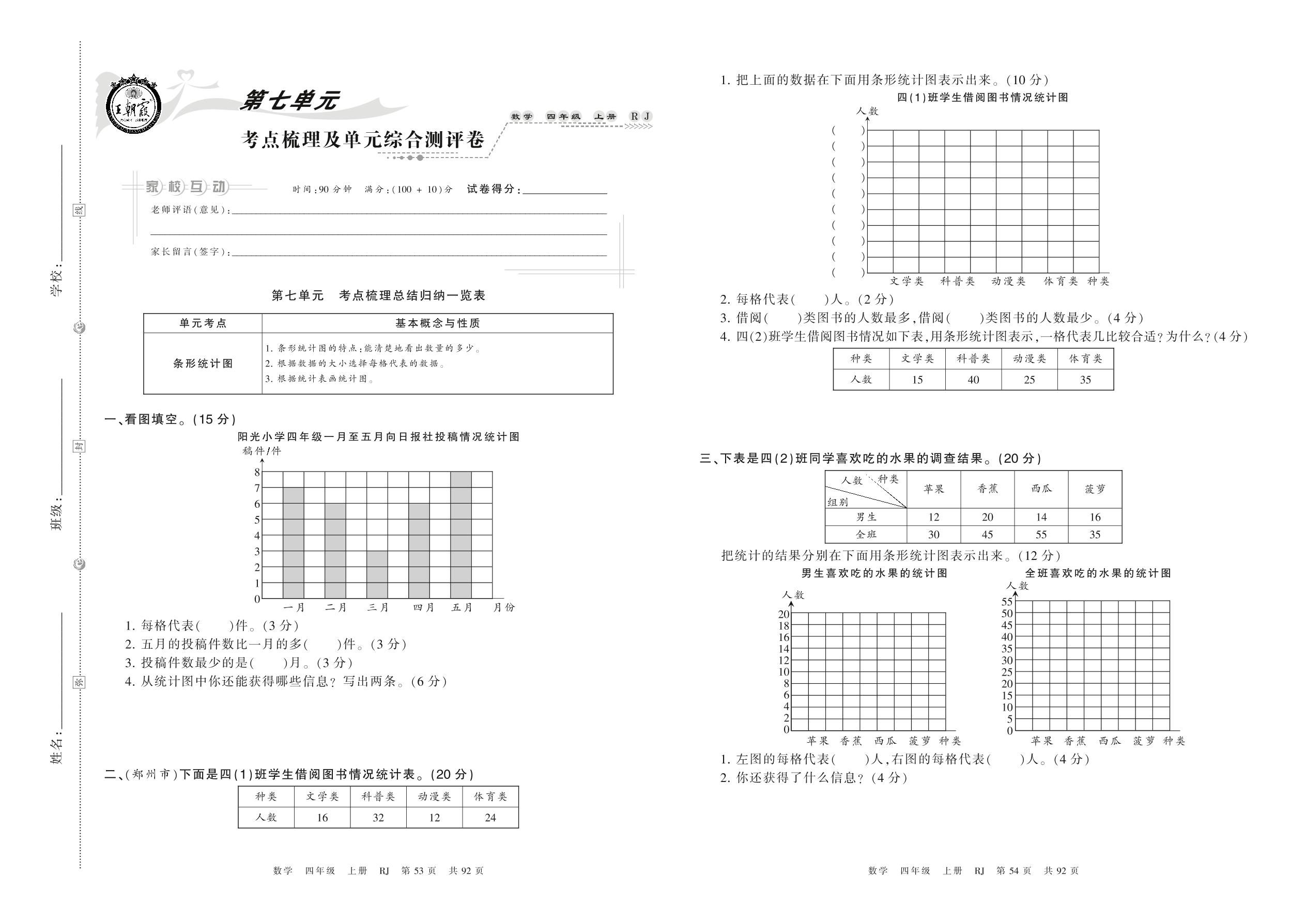 2021上册四年级数学人教版 第七单元 考点梳理及单元综合测评卷