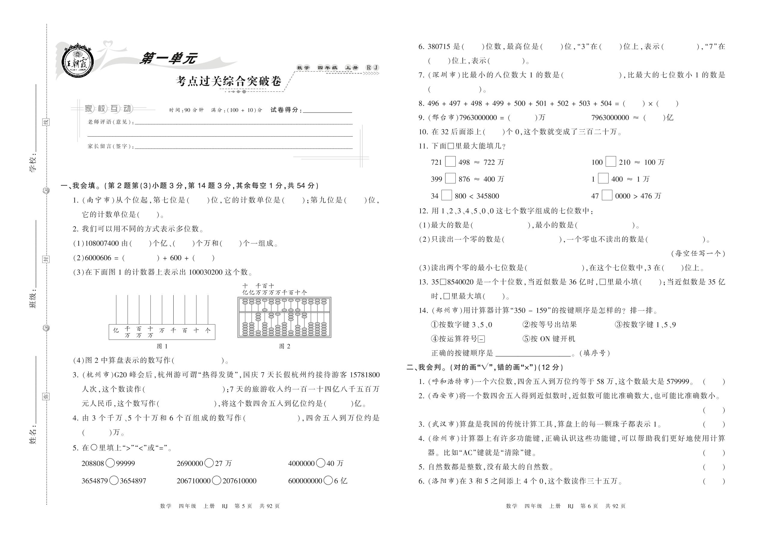四年级数学人教版上册单元卷