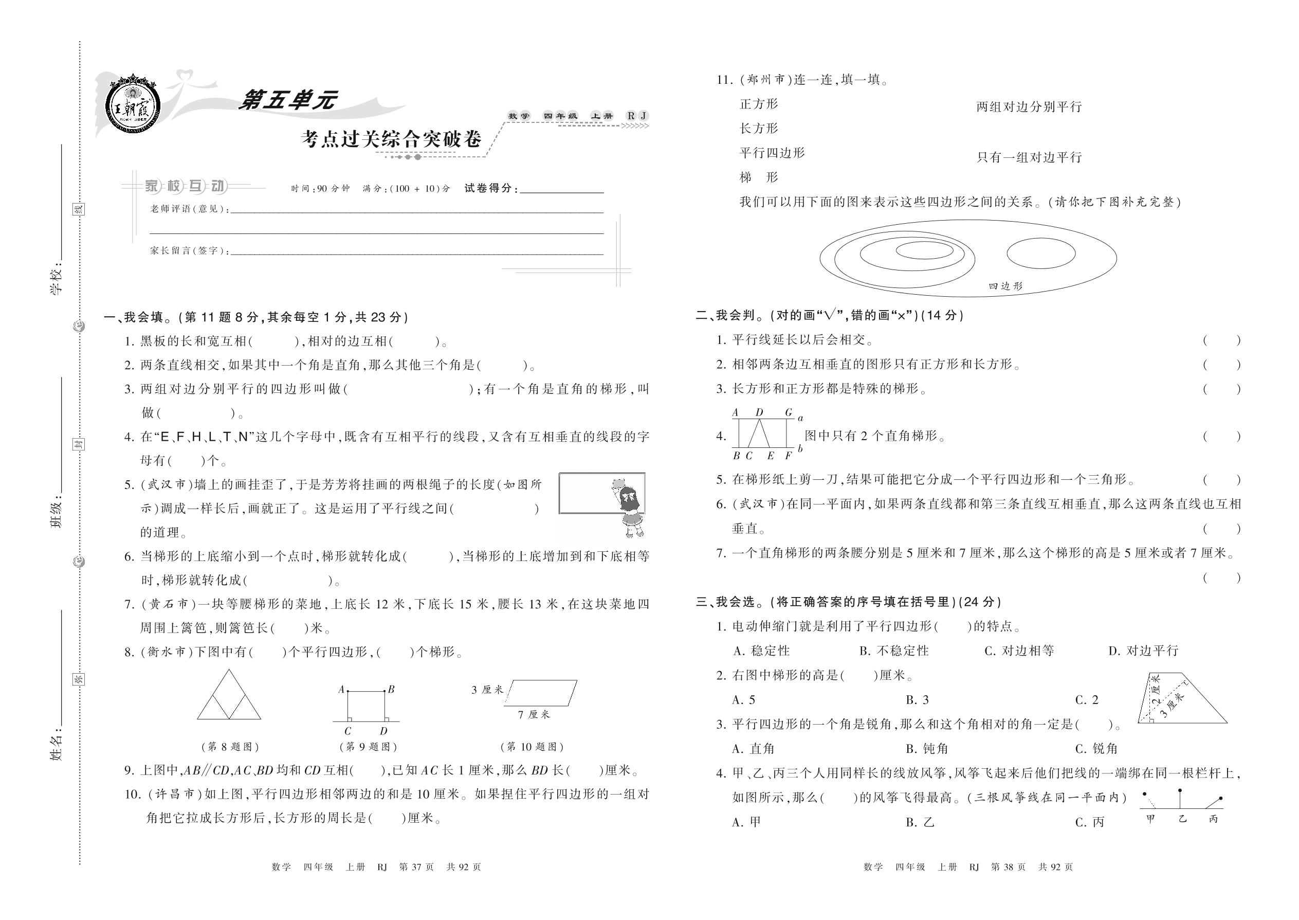 2021上册四年级数学人教版 第五单元 考点过关综合突破卷