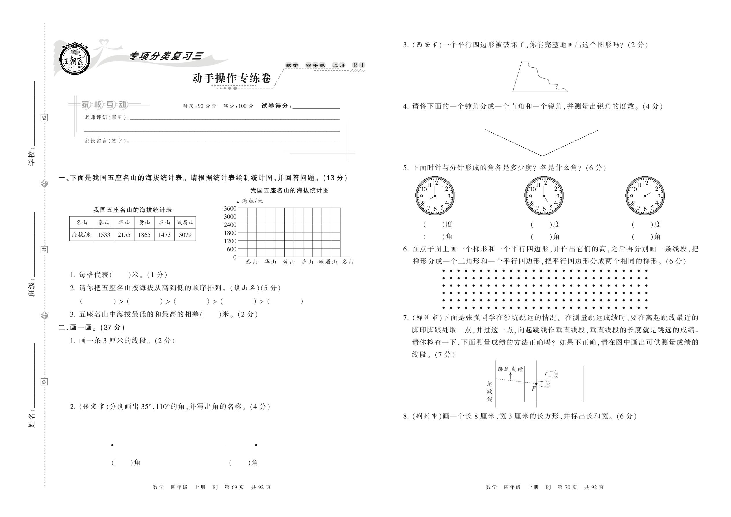 2021上册四年级数学人教版 动手操作专练卷