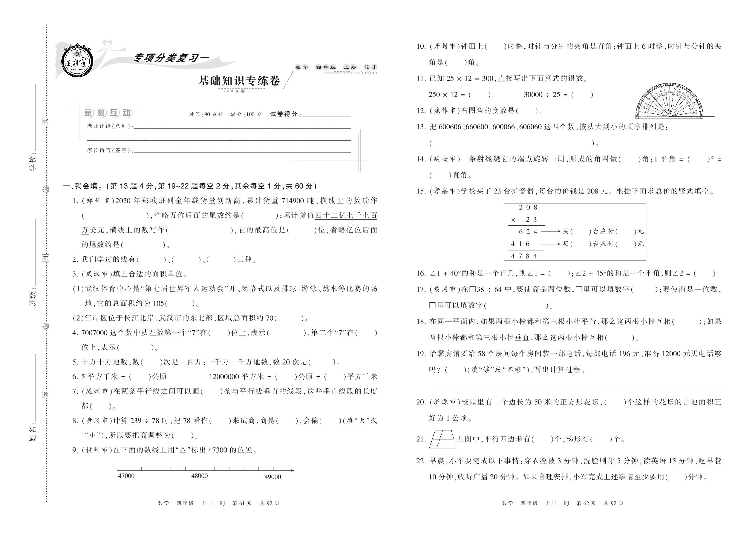 四年级数学人教版上册专项卷