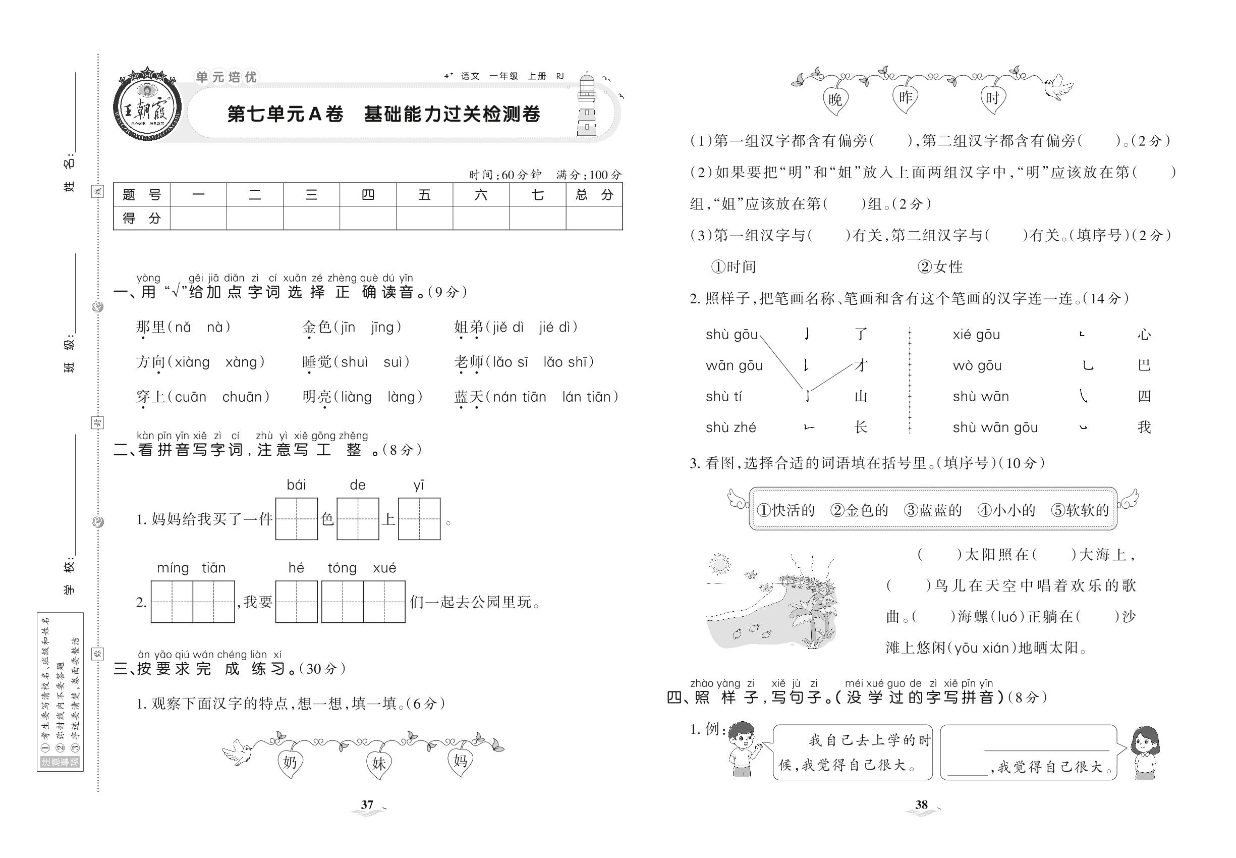 2021上册一年级语文人教版 第七单元A卷 基础能力过关检测卷