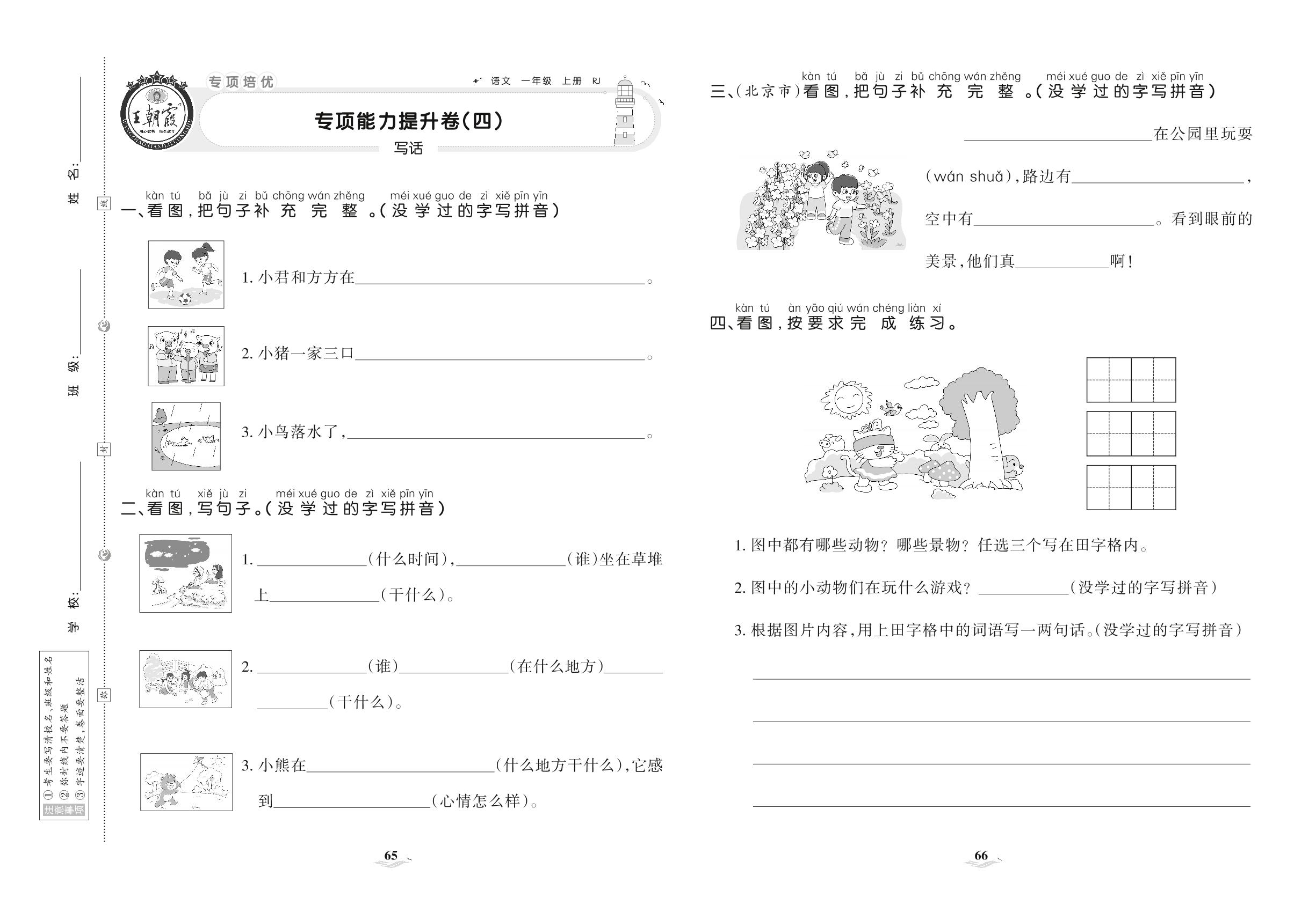 2021上册一年级语文人教版 专项能力提升卷(四) 写话