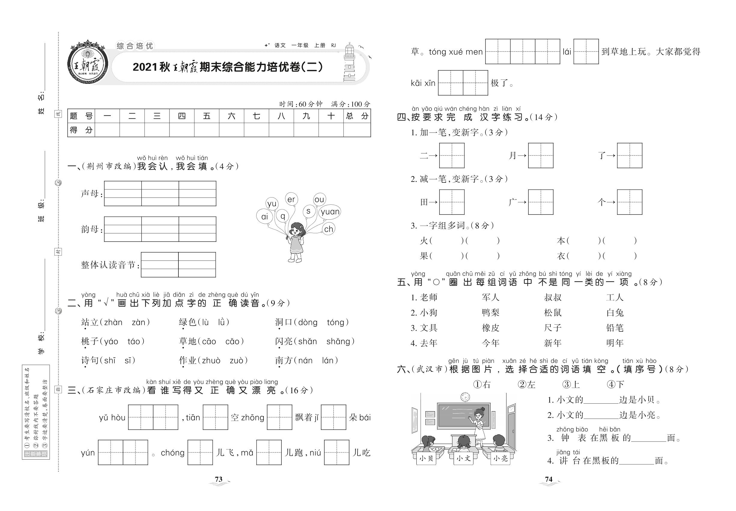 2021上册一年级语文人教版 王朝霞期末综合能力培优卷(二)