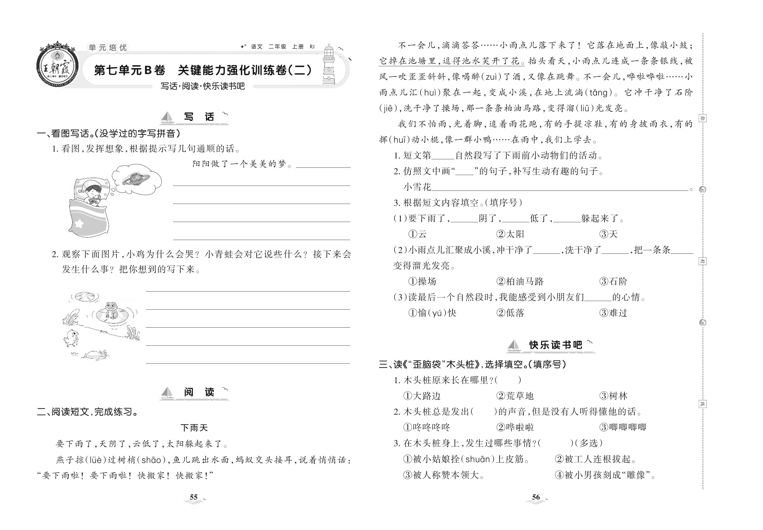 2021上册二年级语文人教版 第七单元B卷 关键能力强化训练卷(二)